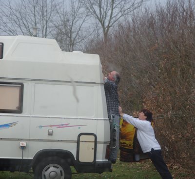 Flere enn oss samler på merker. Naboen vår i Lübeck trengte en hjelpende hånd fra fruen når han skulle klistre opp siste merke. :))