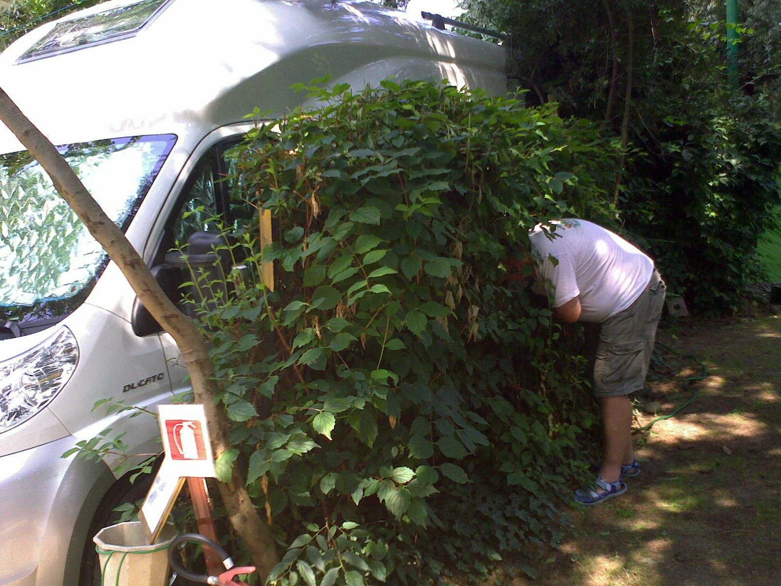 Sånn ser det ut når Bjørn fyller vann på bilen. Var noen som lurte på hva vi holdt på med.