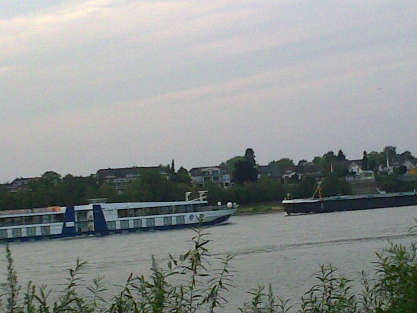 Vi kjørte til Køln i dag, og bor like ved elvebredden. Det er travlere på elven enn på en stor norsk flyplass… Det går båter her absolutt hele tiden. Lastebåter, cruisebåter, småbåter, padlere hele tiden! så nettopp en kjempestor cruisebåt registrert på Malta! Morsomt!