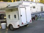 Vi ser mye på tur! Campingvognen på bildet er kanskje i særeste laget, men sikkert en morsom løsning for de som har den! I hele tatt, campingplasser er kjekke steder, ingen andre plasser finner du så mange nasjoner samlet, og vi kommer i snakk og. Mest eksotisk er kanskje australiere og new sealandere, som er på langtur. Irer er også sjeldne, og i går kom en bil og campingvogn fra Marokko. Mye å se altså!
