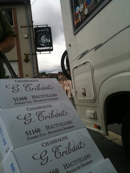 Kontrolltellet to ganger, og vi er enige, det stemmer med kvoten. Dagens innkjøp var det siste, 30 flasker blanc a blanc, favoritten, fra de alltid like hyggelige folka i Hautvillers. Nå har vi plassert alt, og tar et stykke nordover i morgen, definitivt hjemtur. Ferja går torsdag ettermiddag. Blir rart å komme hjem!