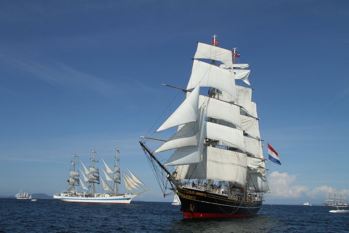 Nå er vi tilbake på jobb, begge to. Forrige helg gikk med til Tall Ships-jobbing i Stavangers flotteste festival noensinne, og både Jorunn og Maria var med, mens Ingrid var i Kina. Her er et bilde fra regattastarten: