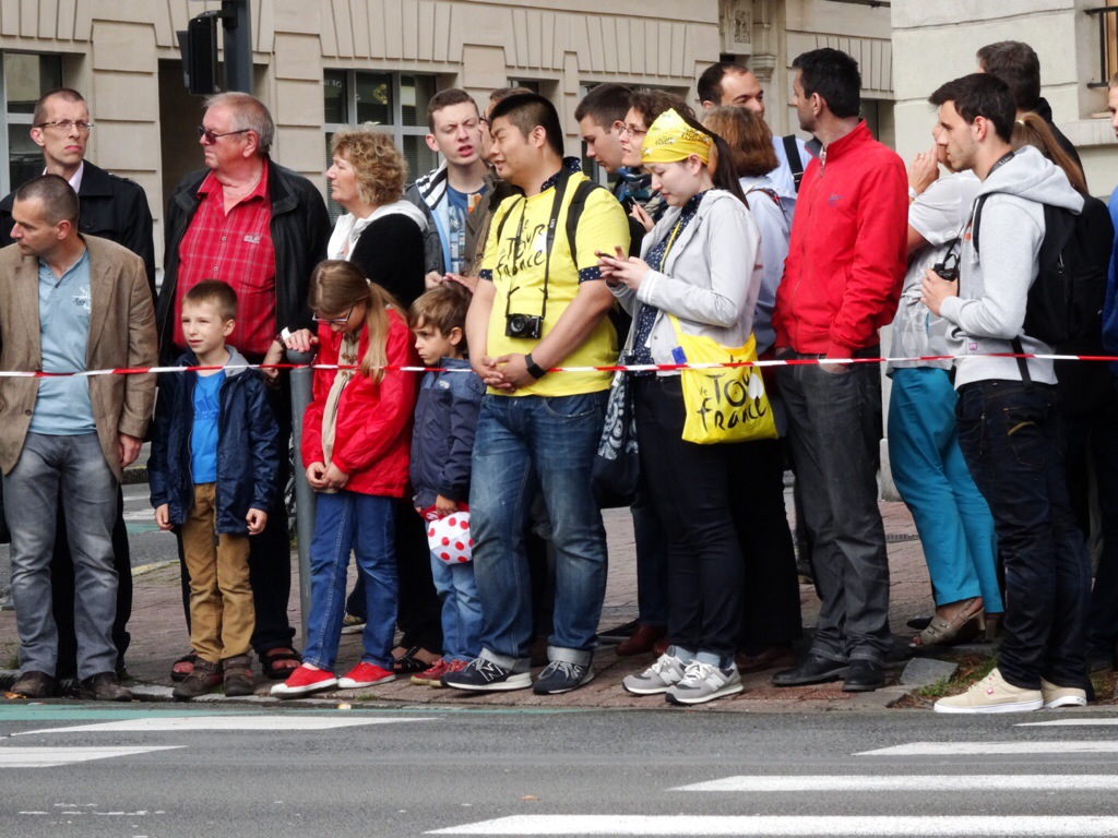 Vi sto i sentrum, og hadde alt på storskjerm line bak oss mens vi ventet på syklistene.