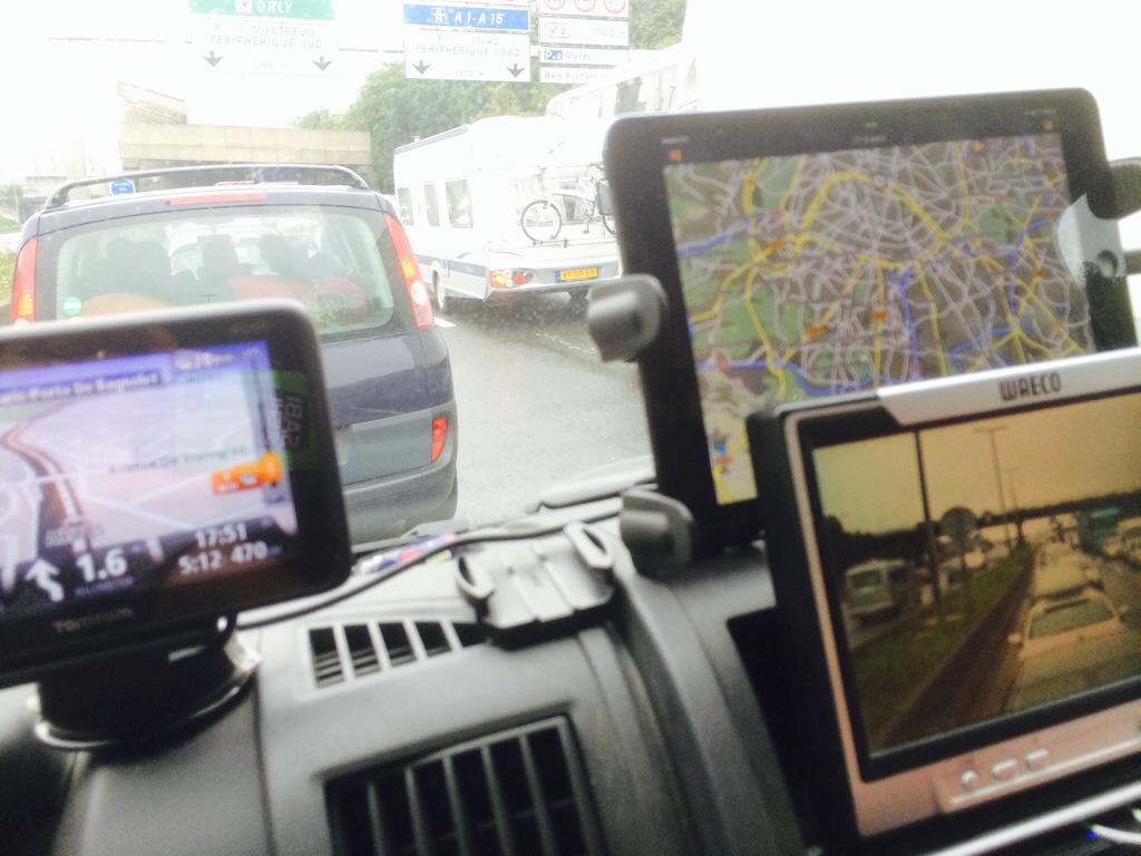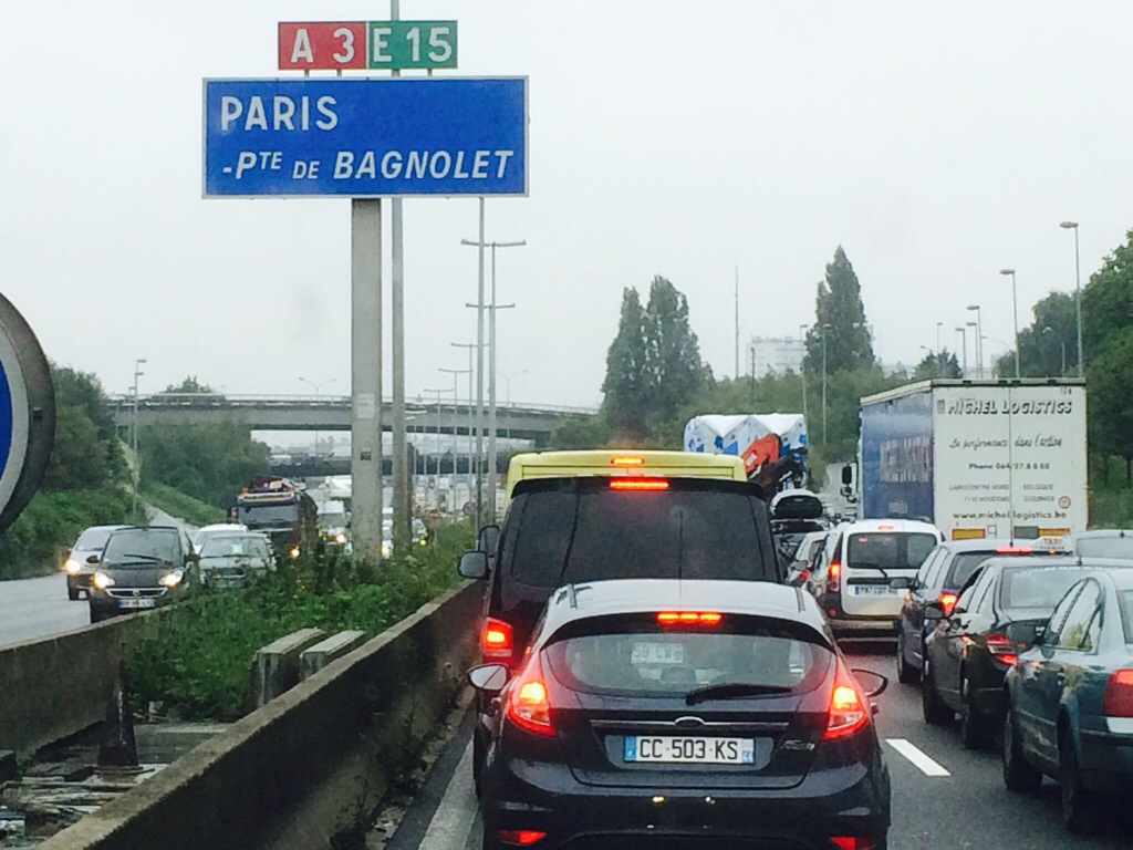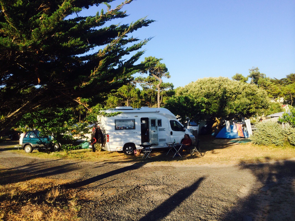 I morges reiste vi fra øsende pøsende regnvær og ganske kaldt… Så fliste vi gjennom Paris og nedover og vestover. Først forsvant regnet, så ble de grå skyene færre, før de ble hvite og lette og himmelen ble blå… Deilig!