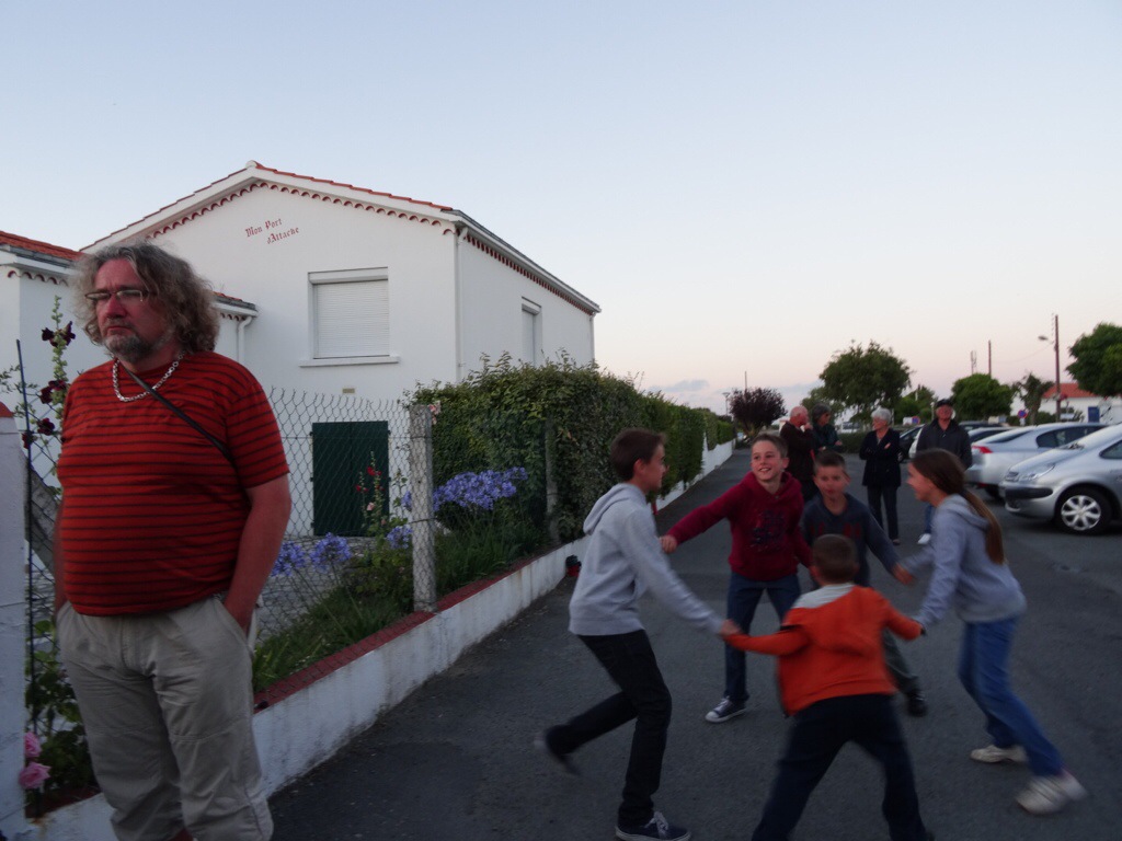 Vi har hatt en flott dag. Avslutningen og feiringen for vår del var på en gaterestaurant uten mye å vise for seg. Vi valgte østers. Etter det spiste Bjørn en skinke med hvite bønner, a la Vendée. Jeg spiste en bavette med poteter. Bjørn fikk en assiette de fromage, med en sykt deilig chevre. Smøret var blandet med øyas saltflak.