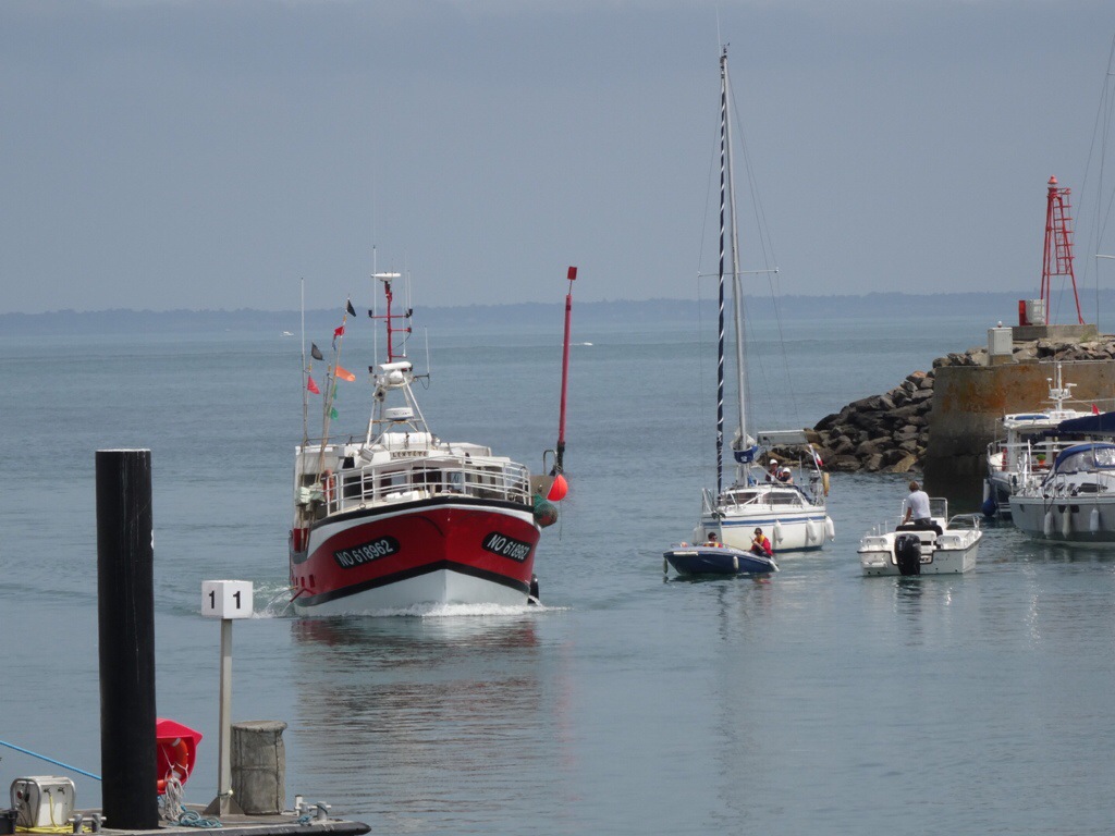 Vi venter fremdeles på storm, den kommer nok i natt, og i mellomtiden har vi sett på alle som pakker sammen vekkblåsbare ting, og så har vi sykla til tuppen av øyen vår og den idylliske byen L’Herbaudière.