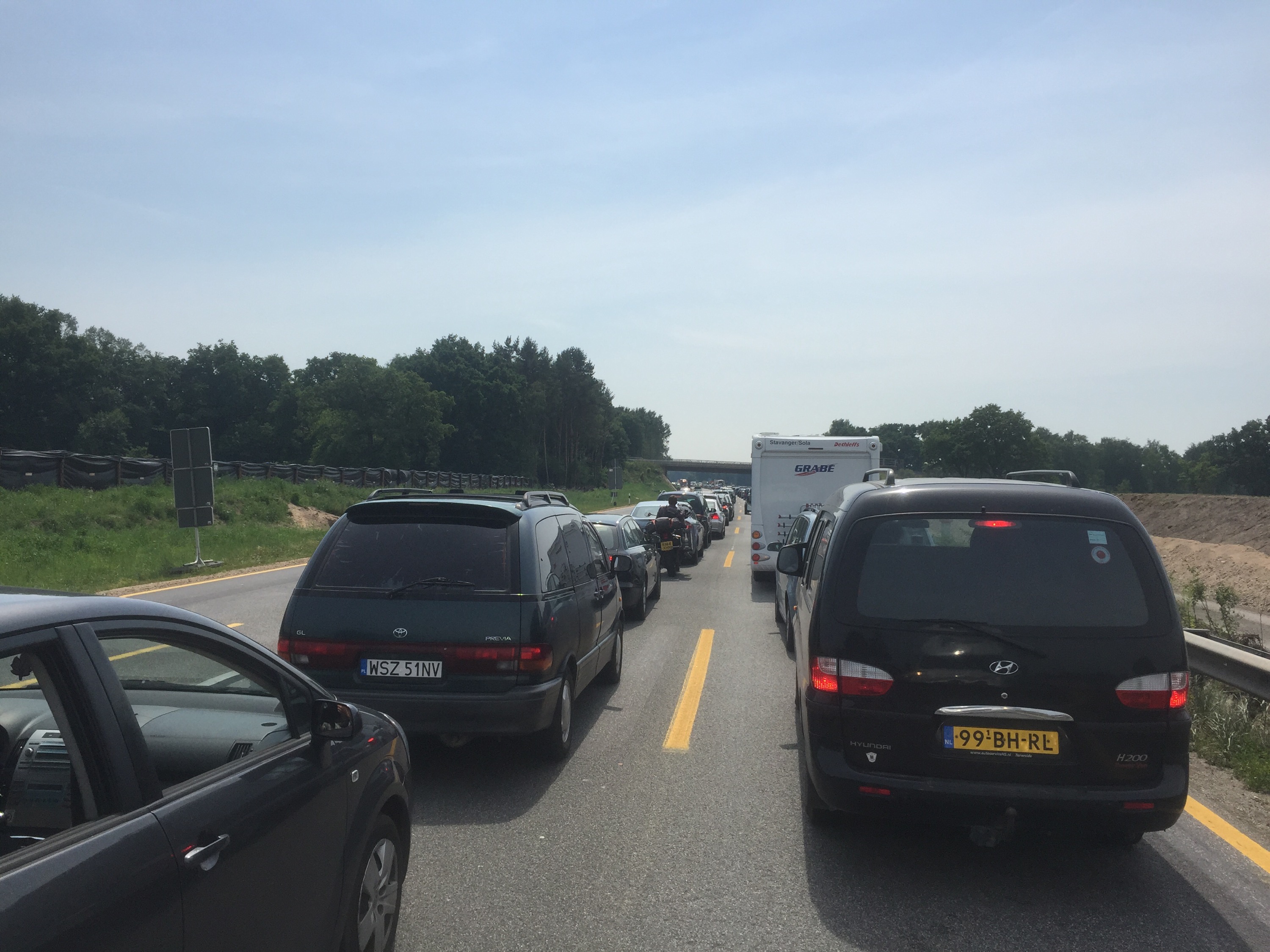 Det ble en litt rar dag i går. Hamburg var stengt, et lite stykke autobahn ble ledet gjennom et boligområde. Køen før var fire kilometer, og det som til vanlig tar tre minutt, tok tre timer. Både folk og biler kollapset i 38 grader.