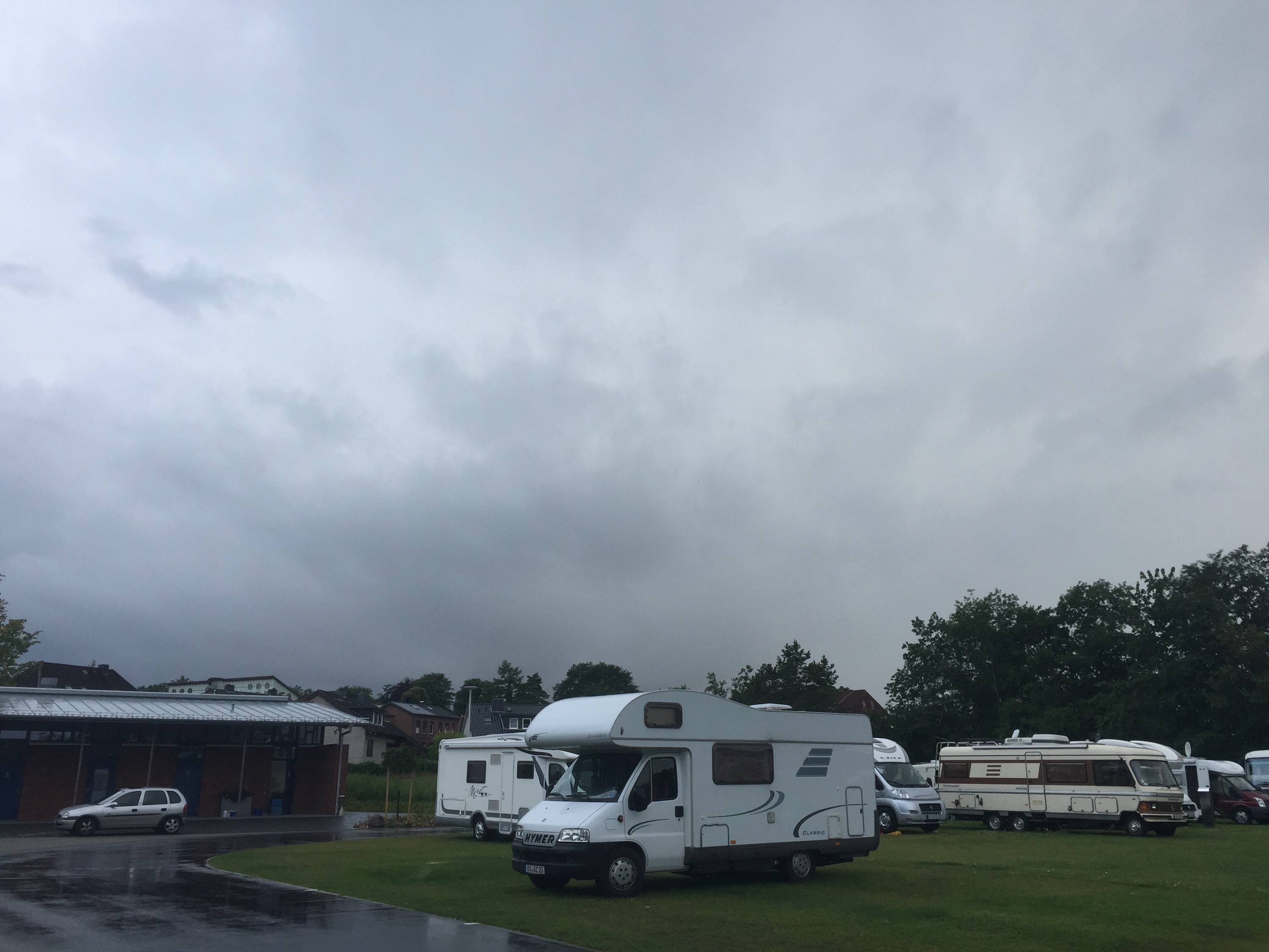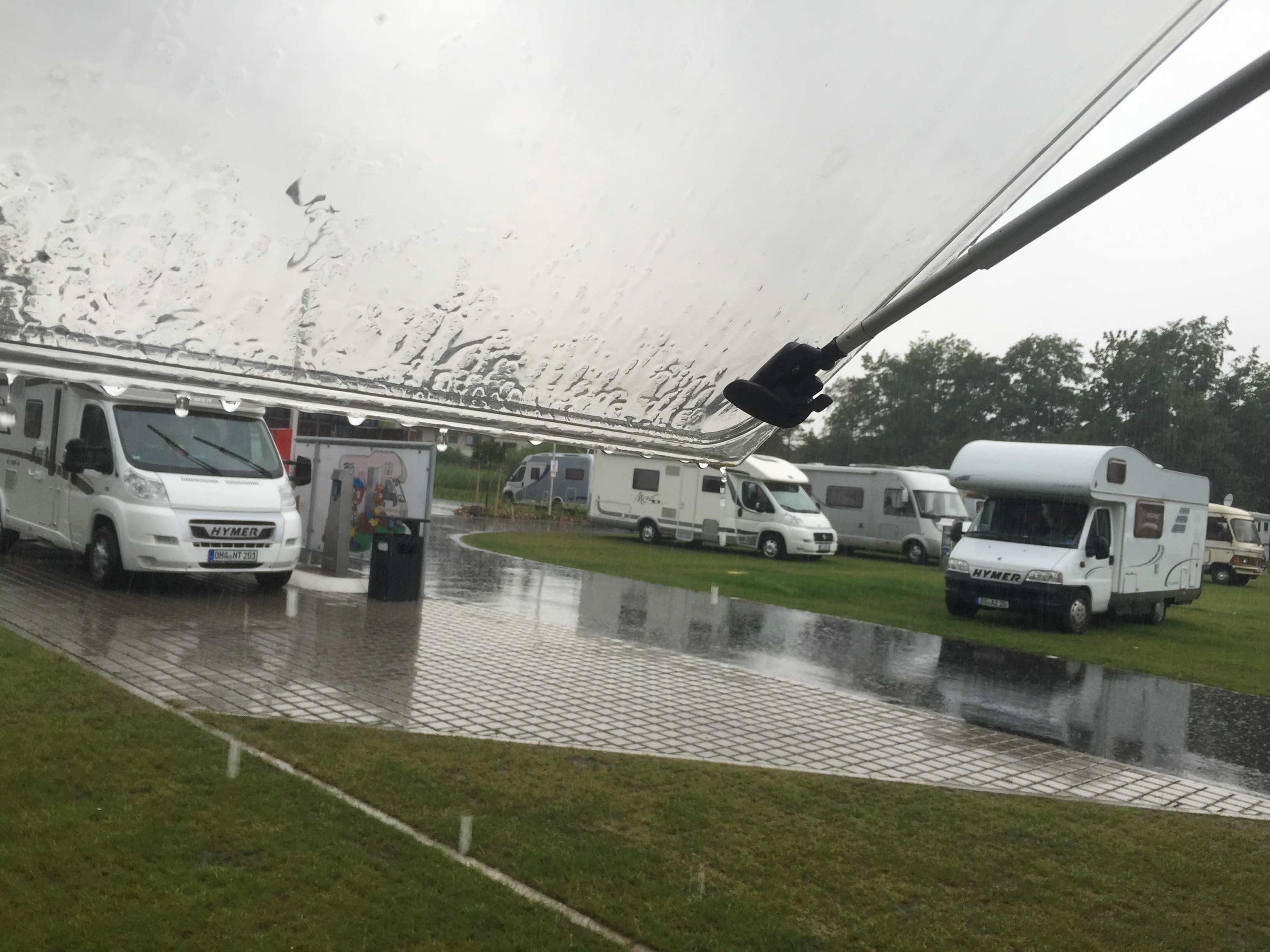 Vel det regner jo… Mente bare å si at vi er ikke så fan av stellplasser. Dyrt er det og! 26 euro, like dyrt som dyreste overnatting i sommer det…