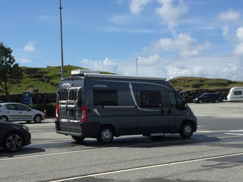 Med ny bil er det sammenlikninger som gjelder. Hele tiden. Denne som vi har nå fram til august, er en lillebror i Pøssl-familien. Roadstar 600L, heter den, og den er 6,00, i følge vognkortet. Derfor; fristende å bare kjøre ferger for å krangle litt 😉 Bilen vi bestilte som ikke kom til sommeren, men som nok kommer like etter, er en Pøssl Roadcruiser Revolution. Høyere og lengre, og hvit.