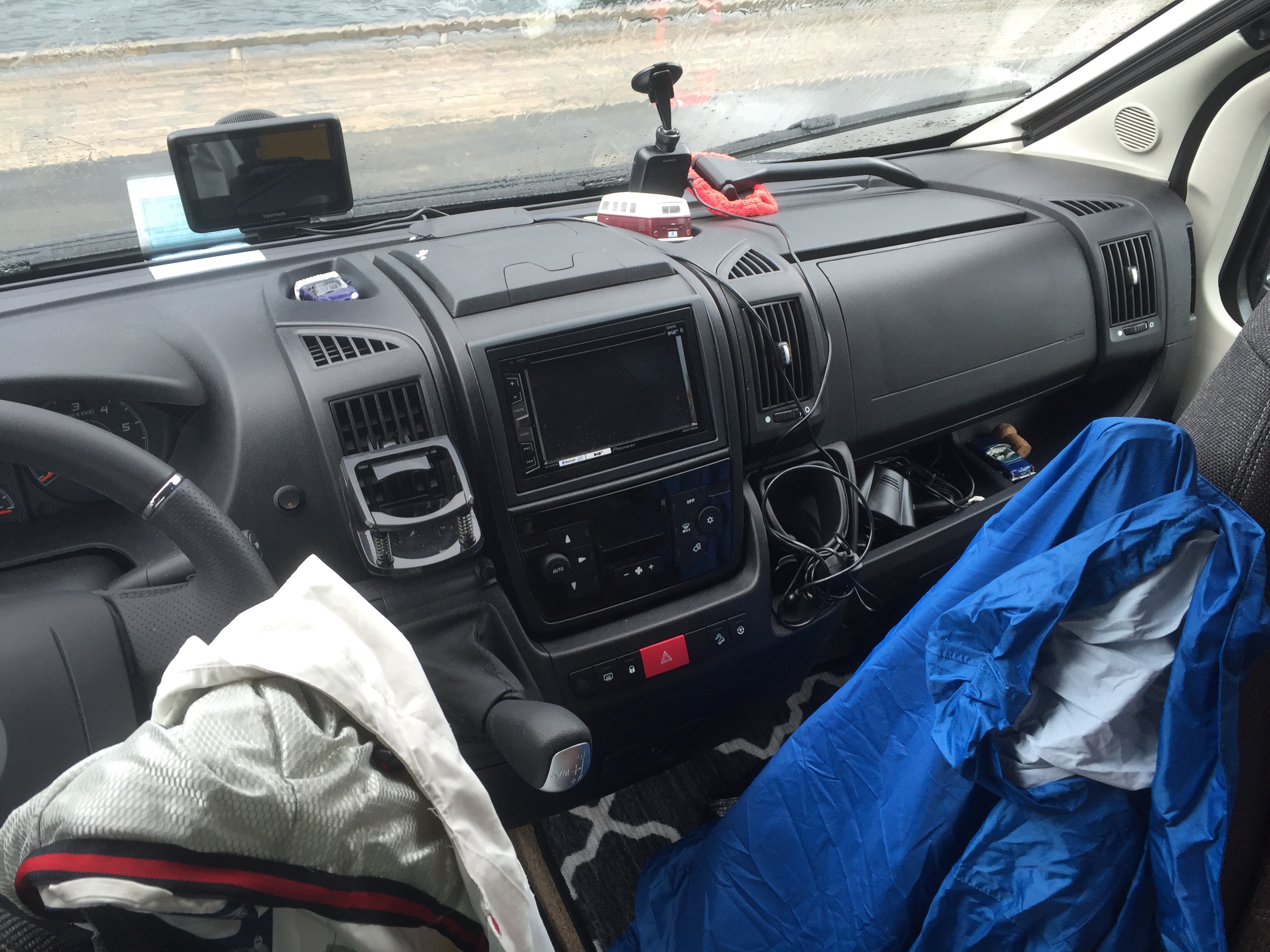 Samling er bare tull. Da vi tømte den forrige bobilen, fant vi ting vi ikke ante at vi dro med oss. Nytt forsett er å rydde ut alt innimellom, og sortere og rydde skikkelig. Også i denne bilen er det plass. Jeg har sortert Bjørns skruer, lagt verktøy for seg, gummihansker for seg, ladedingser har sin egen boks, kameraer og objektiver har fått en dedikert skuff. Det er nok plass i denne bilen og. NOK. Til og med plass til å henge opp findressen til Bjørn, og de tykke vinterklærne. Vi går rett i fellen igjen og drar med oss for mye. Bør jeg ha med stavmikseren og den elektriske smørbrødgrillen?