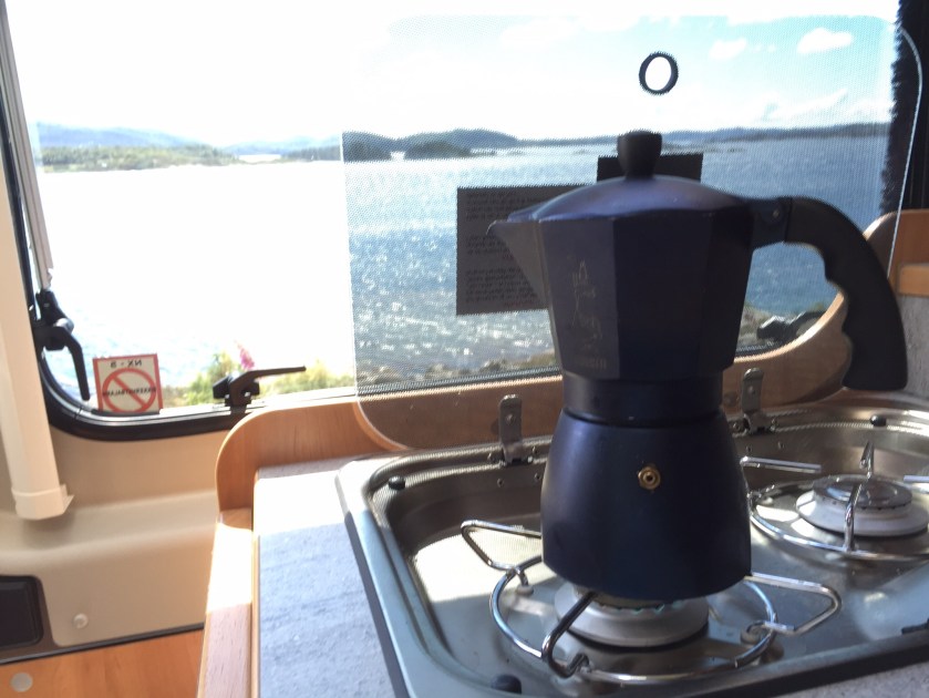 Og så ble det litt kaffe på Ognøy, før siste ferjestrekk. Da kom solen og 🙂 Nå er vi klar for siste innsats med jobbing, og så er det tur i noen uker fra neste fredag. Litt småjusteringer på bil og pakking, men jeg føler meg skrekkelig klar og ikke lite utålmodig!