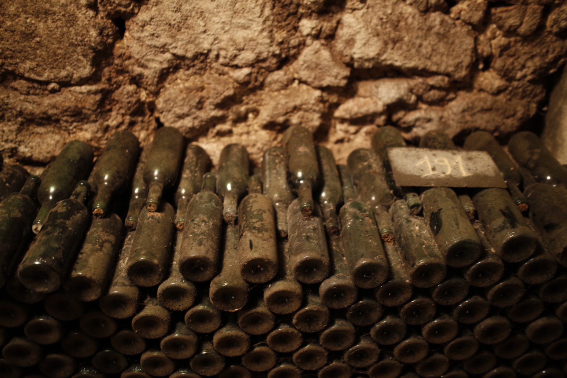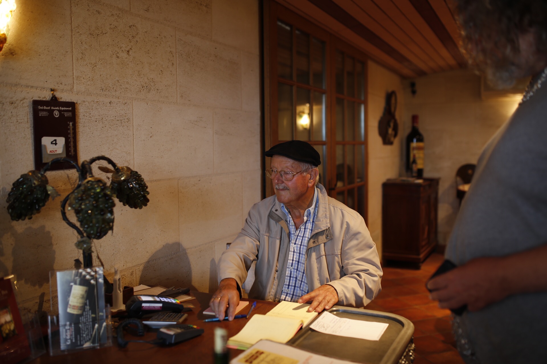 Så ba vi GPSen om hjelp til å finne Saint-Emilion, det begynte å ble ettermiddag, og regnet ga seg ikke. På vei mot byen, var det mange utsalg. «Degustation et vente» er det du må se etter på skiltene. Smak og utsalg. Litt sånn halvtrøtte og kaffetørste, ble det til at vi svingte inn. Grace la de Dieu ble første vingård. Vi svingte inn på en stor gårdsplass, og Monsieur kom og møtte oss, med håndhilsing og smil, og «Kom og bli med i kjelleren». Han fortalte om seks generasjoners dyrkere, 100.000 flasker i året, fem ansatte, om druer og livet. Vi smakte og lot oss forføre. Så det ble endel derfra, og Monsieur var veldig fornøyd og ønsket oss god tur videre.