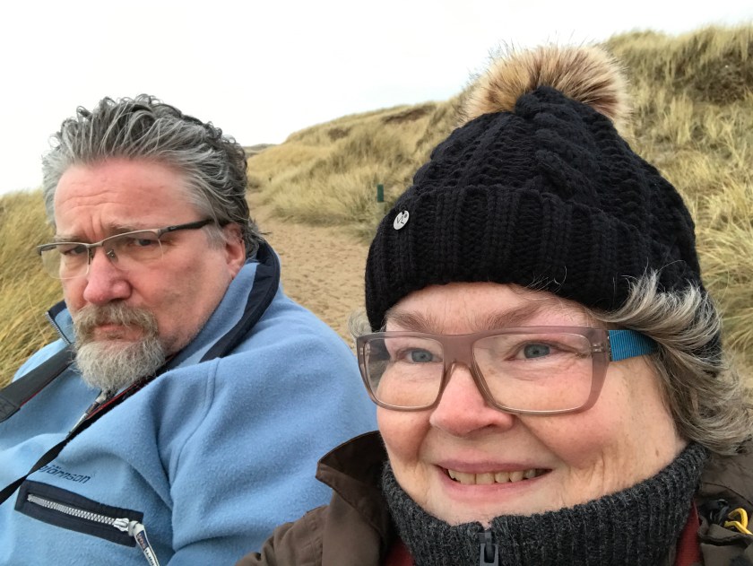 Vi har vært ute i hele dag, til mørket kom. Her er det nydelig vær, om enn litt kaldt. Har fått meg ny ull og lue med dusk.