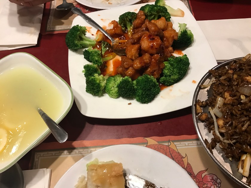 Men de fester hele tiden her. Du trenger ikke gå rundt og være sulten. Vi kjøpte fire muffins en dag, de veide over et kilo. En kveld gikk vi på kinarestaurant. Dette var igjen etter at vi hadde spist opp, og vi var sultne og vi er glad i kinamat.