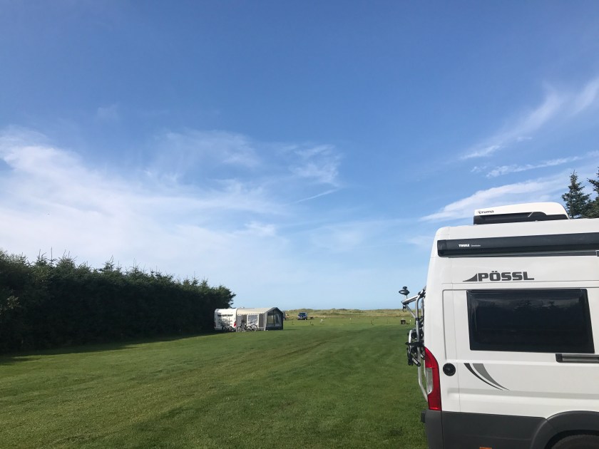 I dag startet vi med Jellingsteinene og vikingmuseet. Veldig opplevelses-utstilling, og veldig flott å se hvordan det kan gjøres. Anbefales, om du er bare litt historieinteressert! Så gikk turen videre nordover, på vestkysten av landet, over Aggersund, utsikt mot Mors. Vestkyst. Kjennes nesten ut som hjemme! Jammerbugten er masse hav og mye sjarm, solen skinner og alt er bare topp.