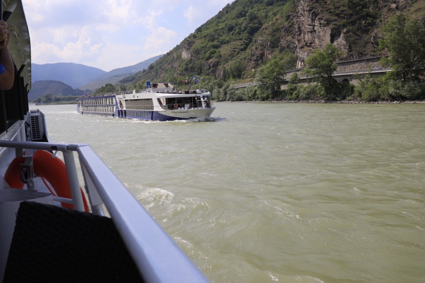 Alle stedene nedover er nydelige, stort sett små vinbyer, og markene ligger helt ned til elven og omkranser husklyngene. Spitz, Dürnstein, Weißenkirchen og Stein, alle sammen verdt en dag og to. Dessverre har vi ikke så lang tid, men det blir jo litt mer sightseeing og vinhandel.