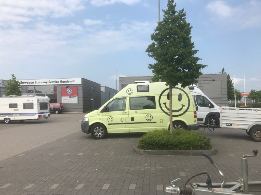 Vi kjørte til Løkken i dag. Det er en koselig by, og solen skinner på oss igjen. Ganske langt strekk i dag, fra Lüneburg, med alle «Bauen für Sie» nord for Hamburg. Nesten så jeg gruer litt til vi skal nedover igjen. Det tok tid!
