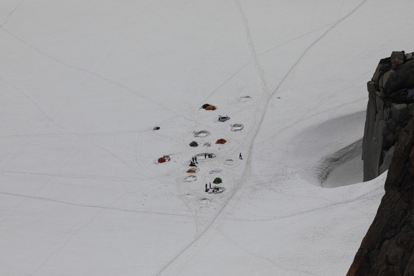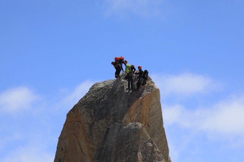 Det var masse folk på toppen, noen hadde gått/klatret i dagevis fra Italia, og det var mange klatrere. Det var ganske imponerende å se, samtidig som det jo ser helt galskap ut. Er nok ikke for meg…