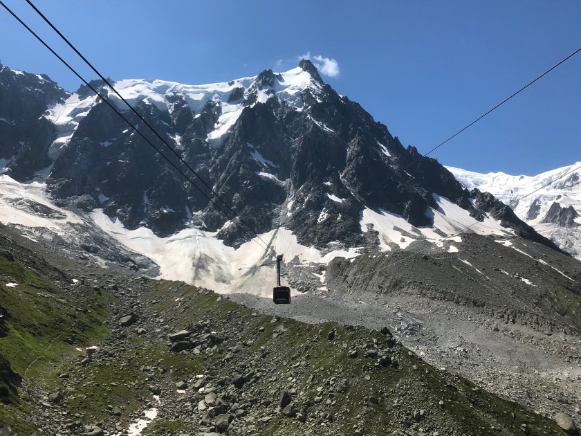 Denne utblåsningen kom på mandag. Bjørn nærmest ropte, mens jeg var inni bilen, vi hadde akkurat parkert. Jeg tenkte jo at vi hadde bulka bilen, punktert eller mista et hjul minst! Men det var bare Bjørn som så opp i fjellsiden og innså at tingene som herifra ser ut som små blåbær som triller ned fjellet egentlig er gondolbanen til Auguille du Midi.