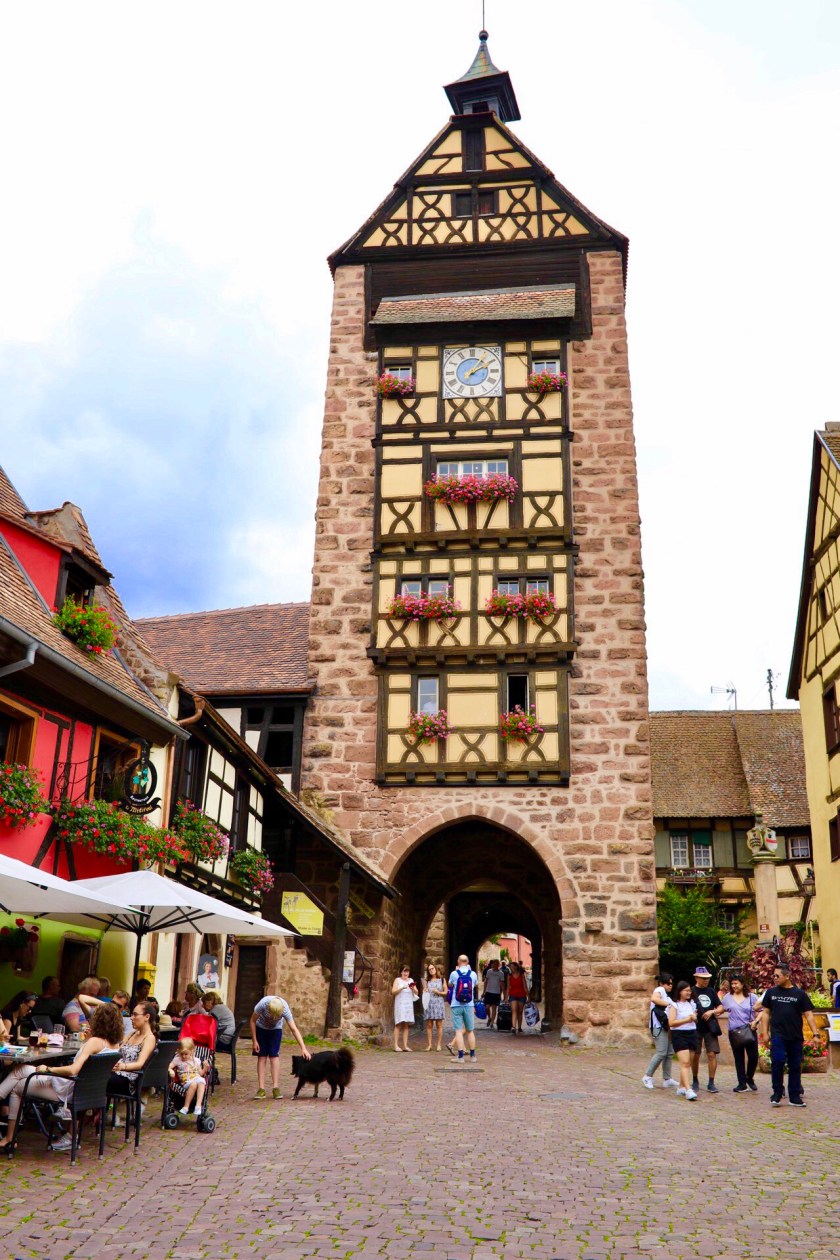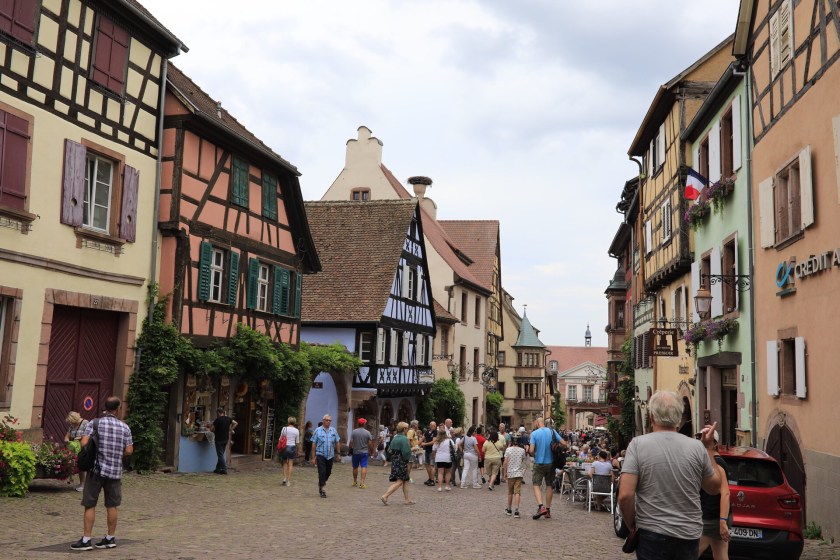 I dag tok vi turen til Riquewihr, en nydelig liten by innenfor middelaldermurer, og med fantastiske hus i alle farger. Det ble en liten vandretur opp og ned hovedgaten, og vi lot oss friste av kokosmakroner med rom-rosin-smak, og veldig god tomme-ost. Vi har ikke vært her før, og det var verdt turen. Enkel bobilparkering var det også, et steinkast fra sentrum.