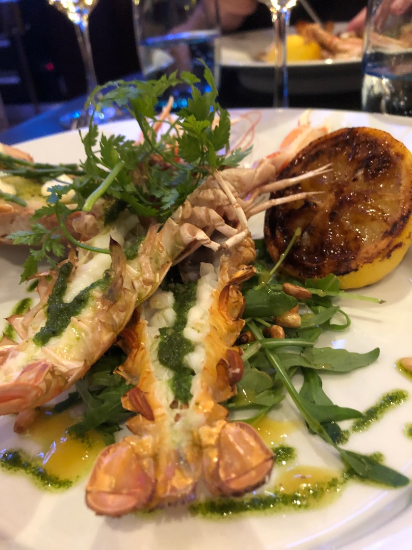 Vi reiste fra Tananger i går kveld med julepynta Stavangerfjord, og nøt en flott middag på Grieg -restauranten. Fjordline har fått tilbake den skikkelige menyen, med mat for voksne. Sist vi reiste var vi kjempeskuffa, valget sto mellom burger og burger… Servitøren fortalte at det var en suksess da, men jeg setter mer pris på at kokkene får fikse litt fisk! Så i går koste vi oss, kreps, piggvar og oster.