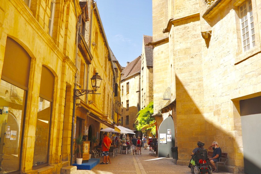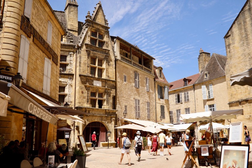 I Sarlat ble det kaffe og is. Denne byen har en sentral gate, og rundt denne på begge sider er det smale smau og små ganger og passasjer. Det er en av de best bevarte middelalderbyene og det går faktisk an å gå seg bort. Byen har selvfølgelig stor katedral, og flotte store torg i tillegg.