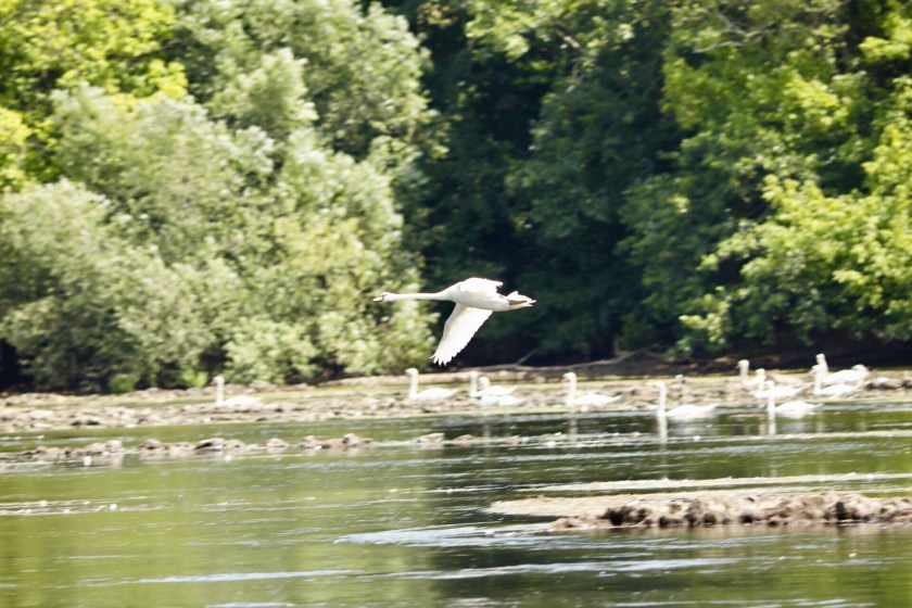 Sist i dag, ble det en tur tilbake til noe vi så i går. I krysset der broen går over Dordogne, i Lalinde, så vi masse svaner, og tenkte at vi måtte tilbake. De var der i dag og. Det var bare litt klønete å komme ned til elva, og når vi endelig fant et sted, var vel egentlig objektivene våre litt for korte. Men det ble litt bilder her og.