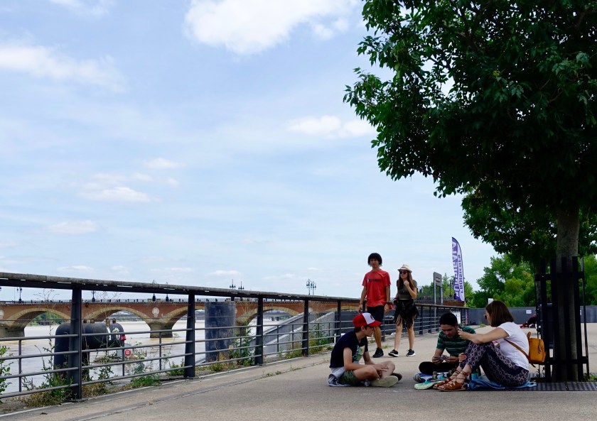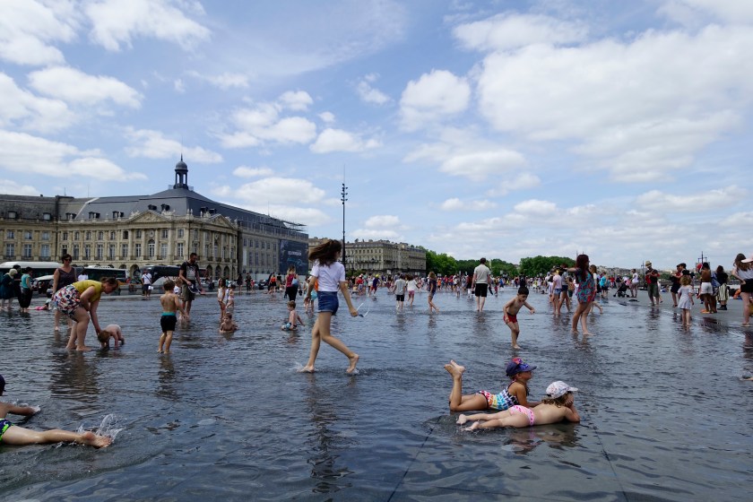 Bordeaux er bare vakkert. Vi kommer tilbake gang etter gang. I dag var byen ganske travel, det var gatemarked og salg overalt. Men det er flott å gå de lange lyse gatene, kjenne på stemningen, sjåppe, om du er i det moduset eller bare valse rundt. Place de la Bourse er nok det meste populære stedet, der kan du vasse, ungene bader, men det er bare ti centimeter dypt. Populært er det i alle fall.