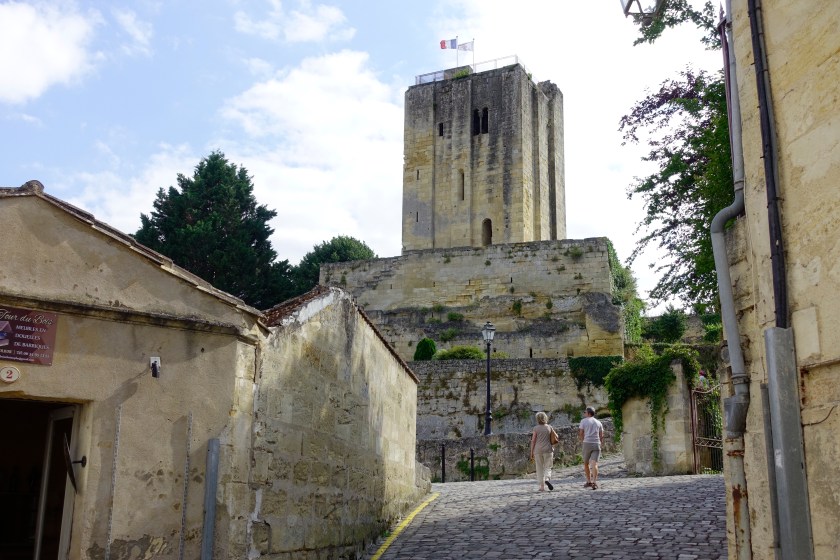 Vi anbefaler allikevel ikke å kjøpe vin her… Det smakte for mye av turistfelle. En god Bordeaux/St. Emilion-vin koster altså mer enn 10 €, den koster kanskje mer enn 50, for å vær ok, og kan koste 50.000… Det er smartere og en mye bedre opplevelse å gå på vingårdene og kjøpe der det står «Vente» og «access direct». De store supermarkedene her har også skikkelig flinke sommelierer, som kan finne det du vil ha, til rett pris, med smaksprøver og det hele.