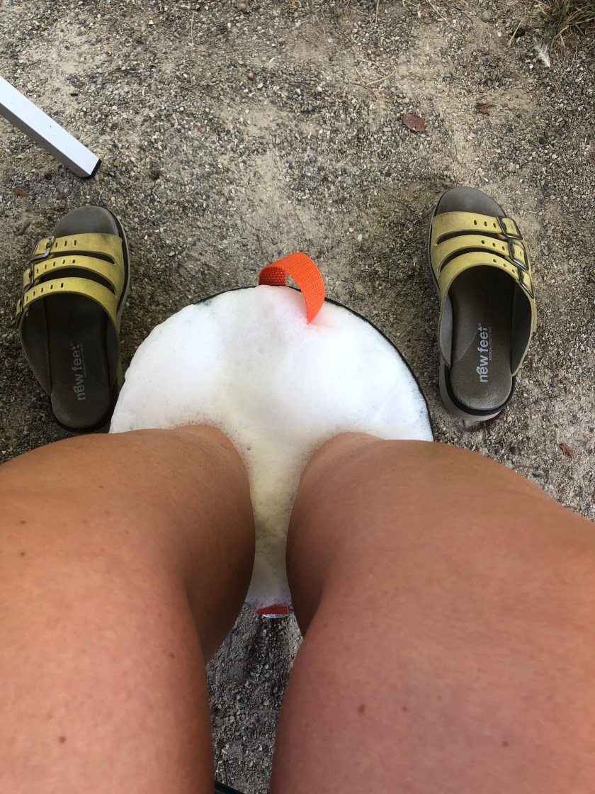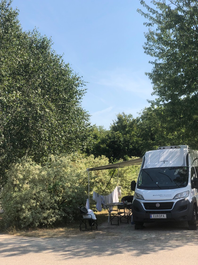 Eller; nyter er kanskje litt drøyt. Vi er i alle fall ganske glad for å ha flytta ut av et ganske kjipt hotellrom og er tilbake i bobilen. Det er varmt!