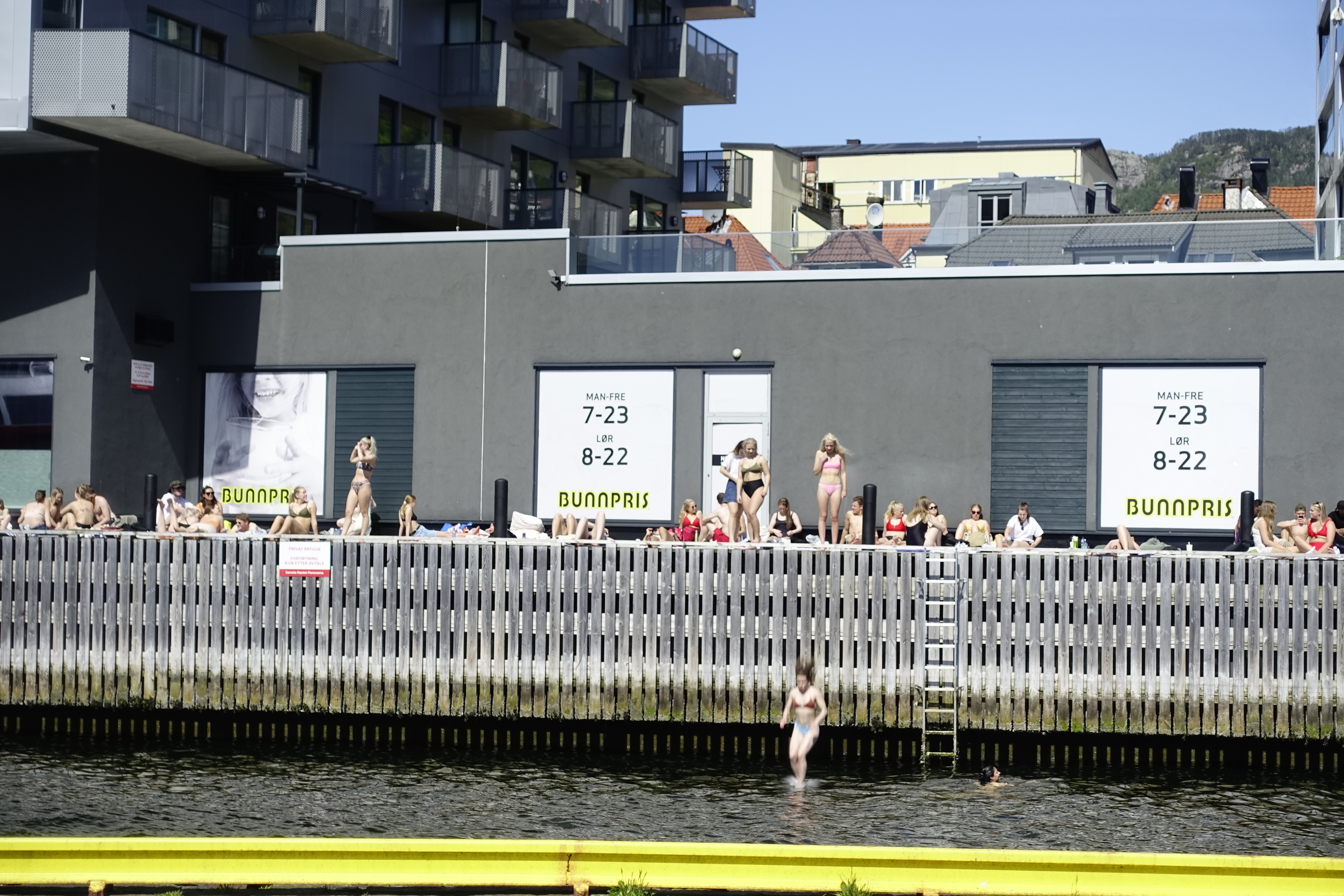 Vi kjørte scooteren til sentrum i dag og, men droppa det der med parkeringshaller… I går sto vi i Bygarasjen, helt greit det, men vi syns jo det så veldig lettvint ut å bare stå der du stopper, som de aller fleste andre på motorsykkel tydeligvis gjør i denne byen. Så vi sto utenfor akvariet, og var innom og så på sjøløver, pingviner, otere og masse rar fisk. Var mye folk, og lite smittevernsmeter, for å si det slik. Men kjekt. vi rusla rundt til Sukkerbryggen, der folk hoppet i sjøen fra kaien, og så på småhusene i Knøsesmauet. Etter det ble det lunsj på thai, og en kjøretur til Salhus. Morsomt sted. Utrolig hvor sjarmerende det er i skjærgården her også. Sørlandet får for mye gratis! Det er sikkert fordi der er det mer sol… 🙂 Ble noen bilder i dag også.