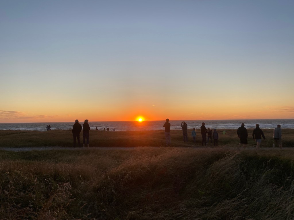 Vesterhavet buldrer, himmelen er blå og klar. Solen nærmer seg horisonten, plutselig i stor fart. Det er like nydelig hver gang. Ganske pussig da, å se de som kanskje ikke har dette som en hverdagsopplevelse, som strømmer til for å se på mirakelet i havet. Jeg blir betatt jeg også. Hver gang.
