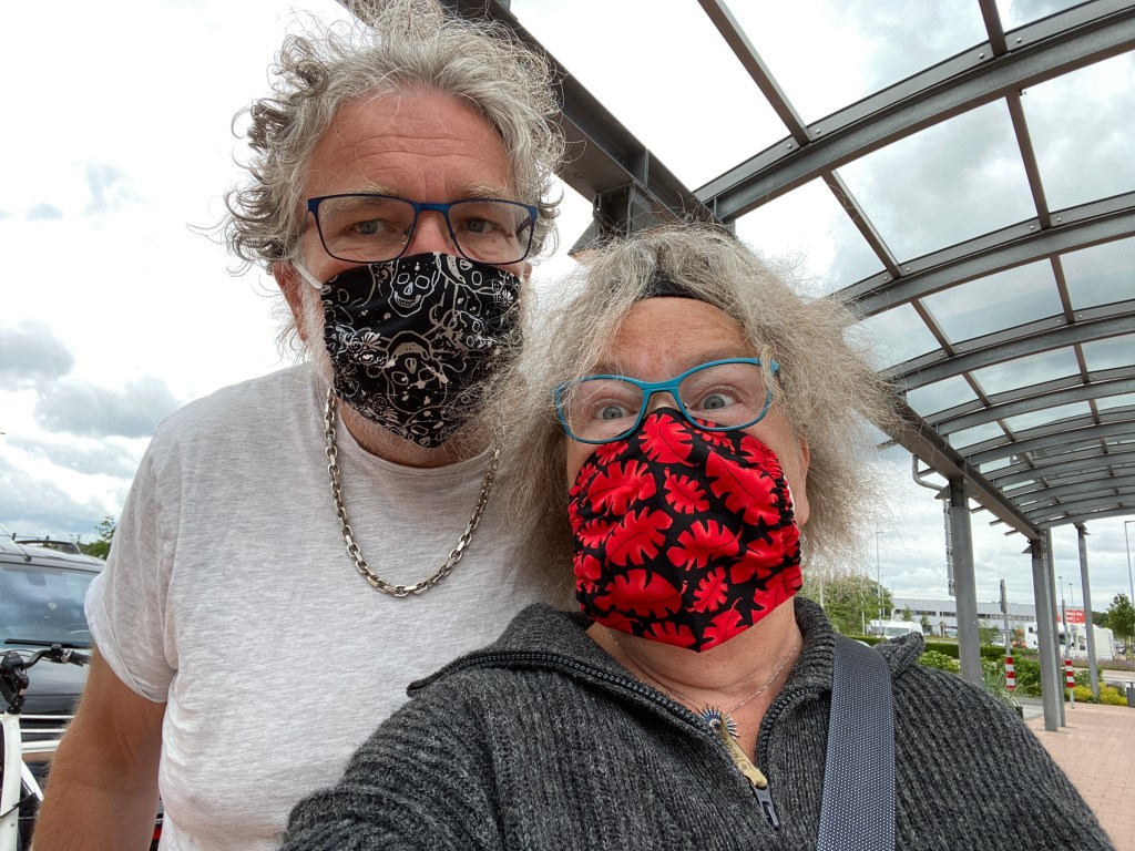 Før noen starter å bli hysteriske. De maskene vi har på oss er ikke kirurgiske sterile masker. Vi hadde med oss det også. Men de aller fleste vi så, hadde masker som lignet på våre. Butikkene hadde også slike, og våre, fra Pro-Service i Sandnes, er tre lags, med tett bomull, men altså ikke sterile. Vi vet det altså.