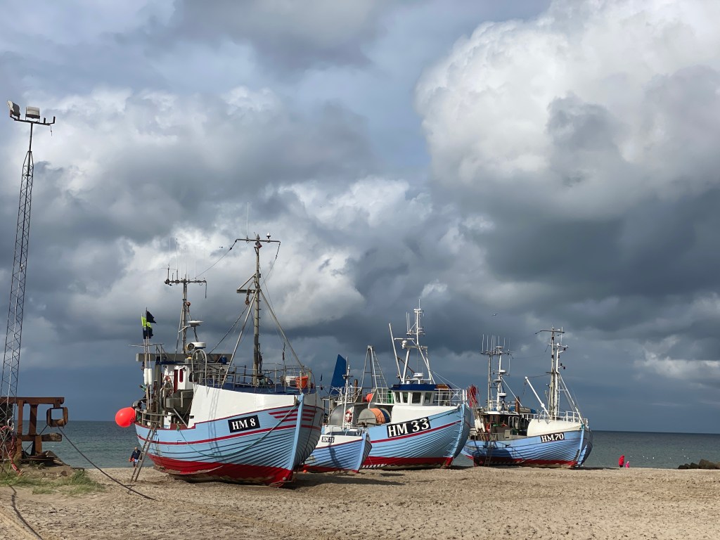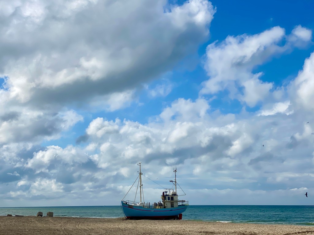 Vi tok oss en tur til Fjerritslev for å kjøpe litt bobler på Luigi (motorsykkelen). Her ute er det nemlig regelen å sitte ute og se på havet og solnedgangen. Jeg lurer litt på om det går i kveld, men vi skal nå prøve. Vi var også borte på Kollerup strand, og så i fiskehavnen i Torup strand. Det er alltid kjekt å se, og det er en av de siste stedene i Danmark hvor det ikke er havn, men båtene går på land for hver gang.