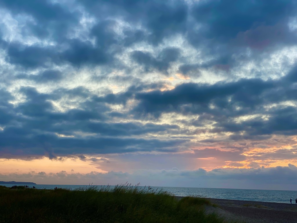 Sol har vi hatt, og litt regn, som bare har flydd forbi, været er det eneste som går fort her. Det ble vindrikking i solnedgang, selv om vi kanskje ikke så solen hele kvelden. I går var det dramatisk himmel, i alle fall.