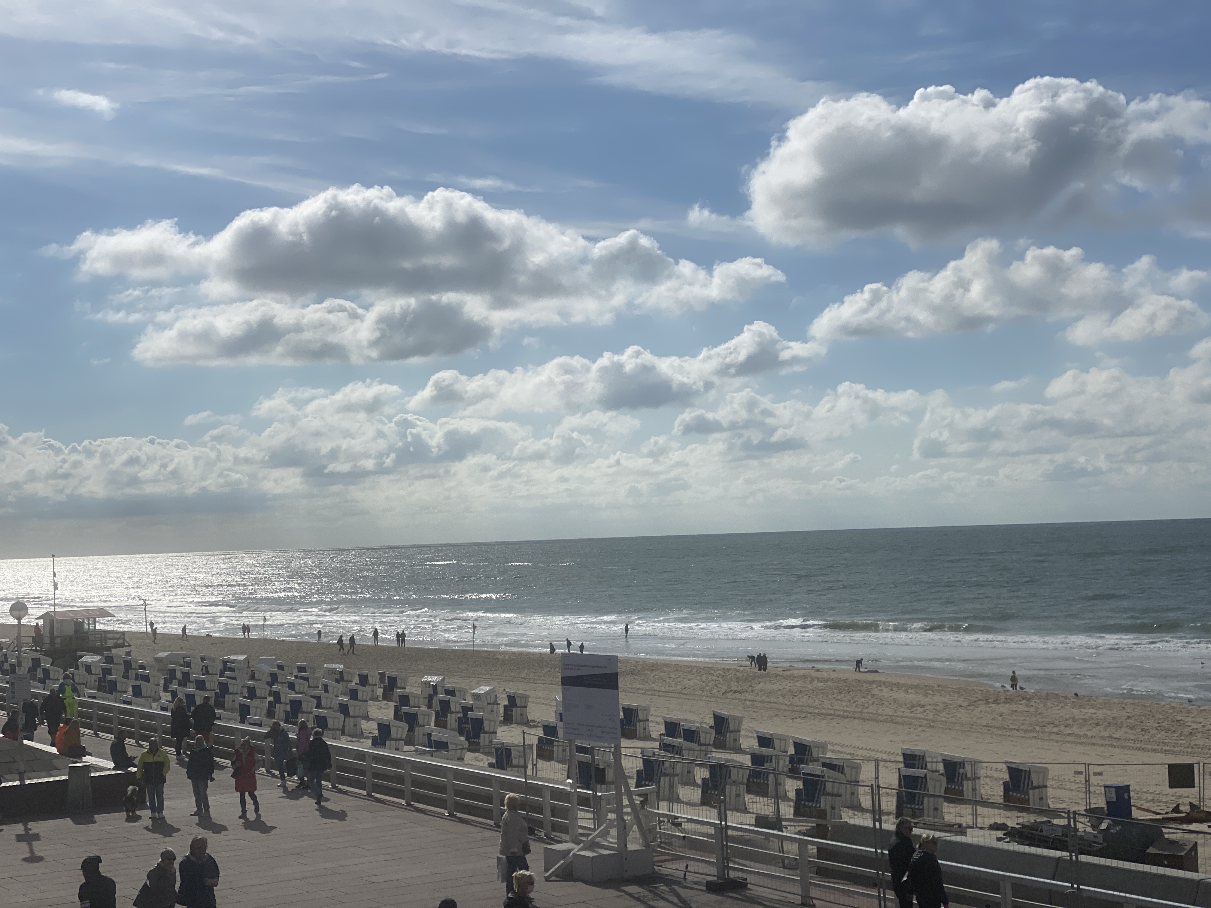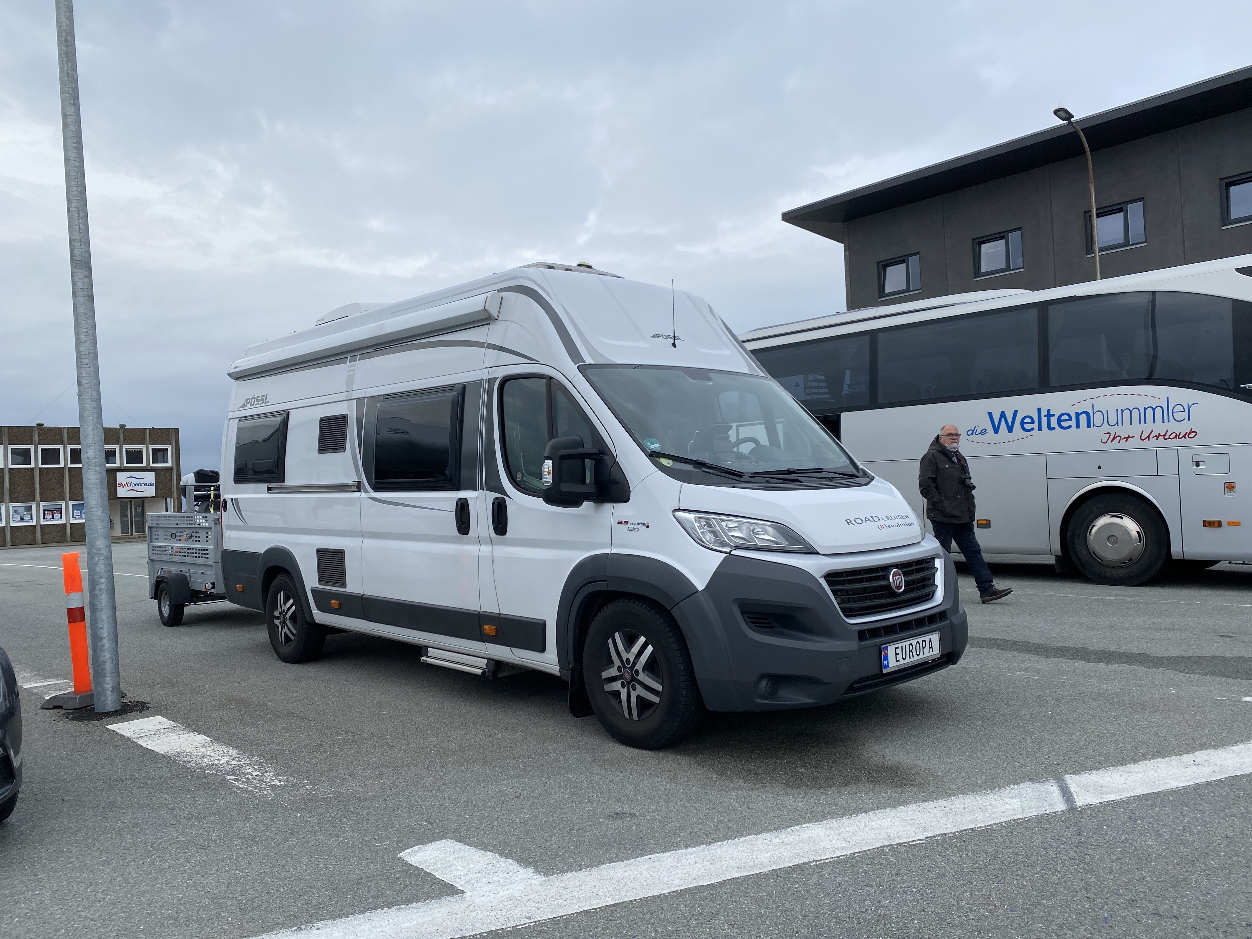 I dag er det sol og ganske varmt her. Vi er på Dünen camping i Westerland, kom over med ferja i morges.