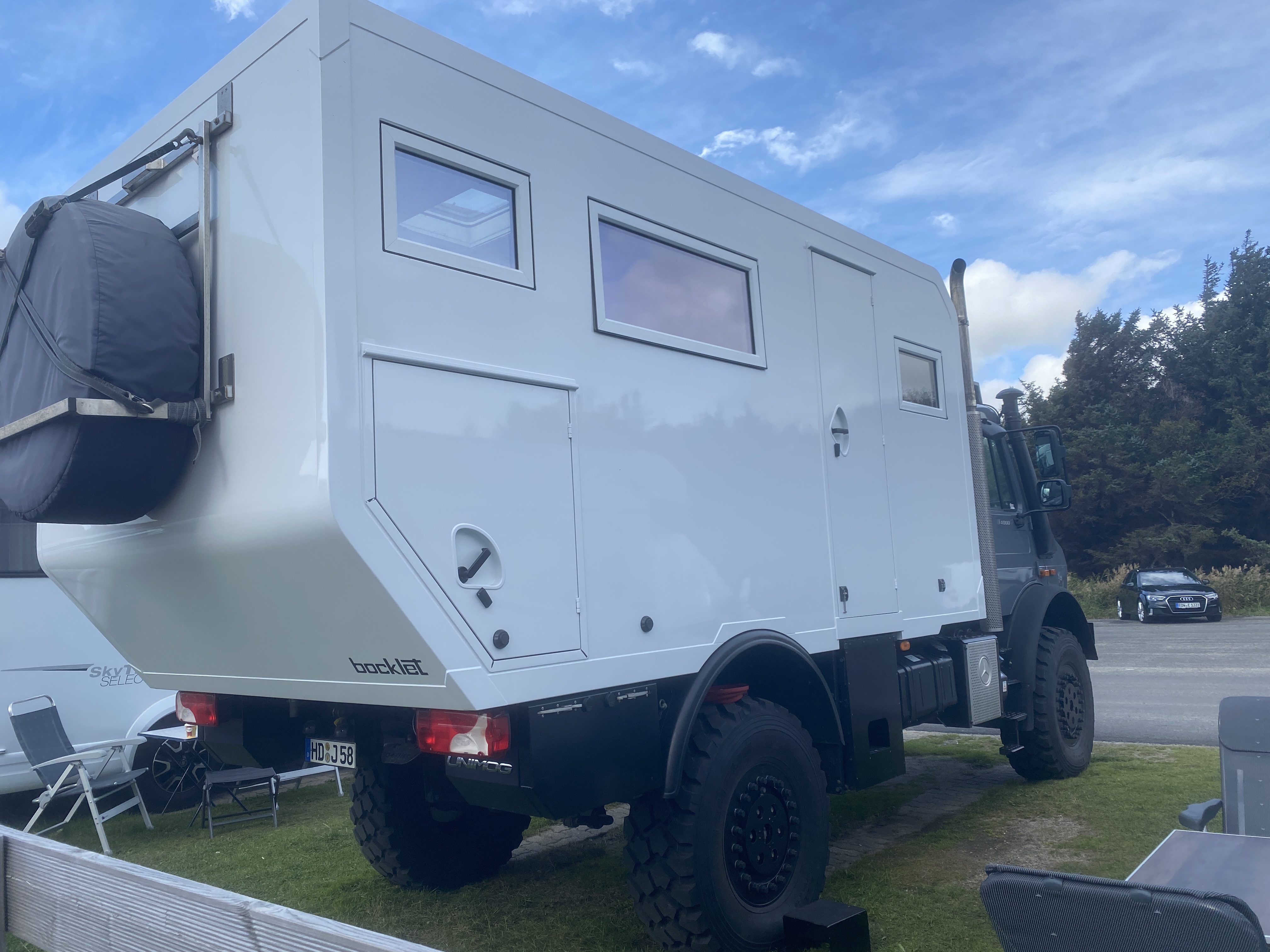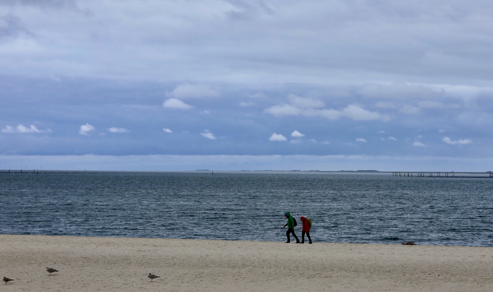 I går var vi en tur nedover øya. På et sted nær Rantum, er det bare få meter bredt og du ser sjøen på begge sider. Innsiden er flatt og gjørmete, med masse fugleliv og våtmark. Utsiden er Vesterhavet, Nordsjøen, bølger med enorm fart. Det er mange surfere på campingplassen, dude-faktoren er ganske høy. Mest spesiell er kanskje den eldre mannen med fire surfebrett som kjører rundt i en VW-T2 campingbil. Det motsatte ytterligheten når det kommer til bil, er nok de med Unimogen. Tipper den nesten kunne kjørt over til fastlandet!