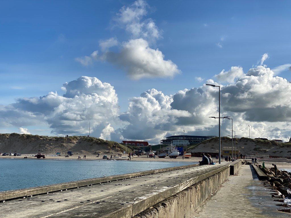 I dag kjørte vi oppover til Løkken, det ble kaffe, lunsj, shopping, og ikke minst, underholdning. En liten fiskebåt kom innover, la seg på bølgene, før han fliste inn mot land, så langt han kom. Så hoppa han uti og henta traktoren, for å få båten opp. Han solgte fangsten på stranden. Sjarm!