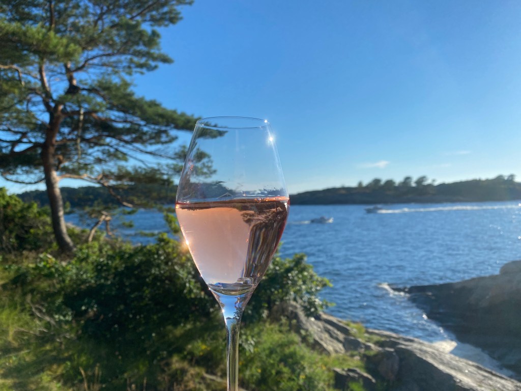 I går satt vi og nøt et glass rosé til utsikten vestover. Det er masse båtliv her i skjærgården, men vi venta jo litt på Fjord FSTR, som i morgen skal ta oss sørover til Danmark. Kjekt å se den gikk på tiden, vi er optimistiske. 🙂