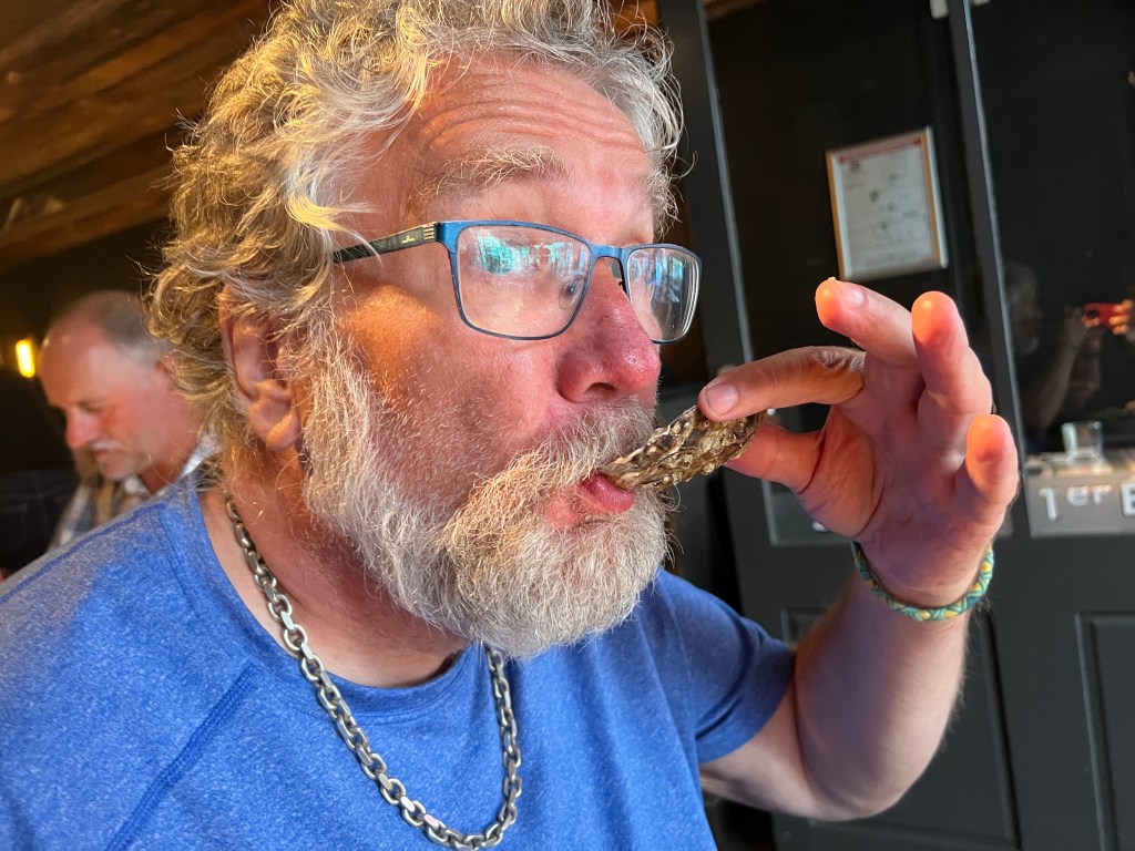 Så vi stilte opp ved innsjekk på Camping du Phare en halvtime før de åpna, og bestilte fem netter. Det blir ganske herlig. Senkende skuldre, ro, sol, østers, hummer, blåskjell og sider… og champagne. Selvfølgelig.