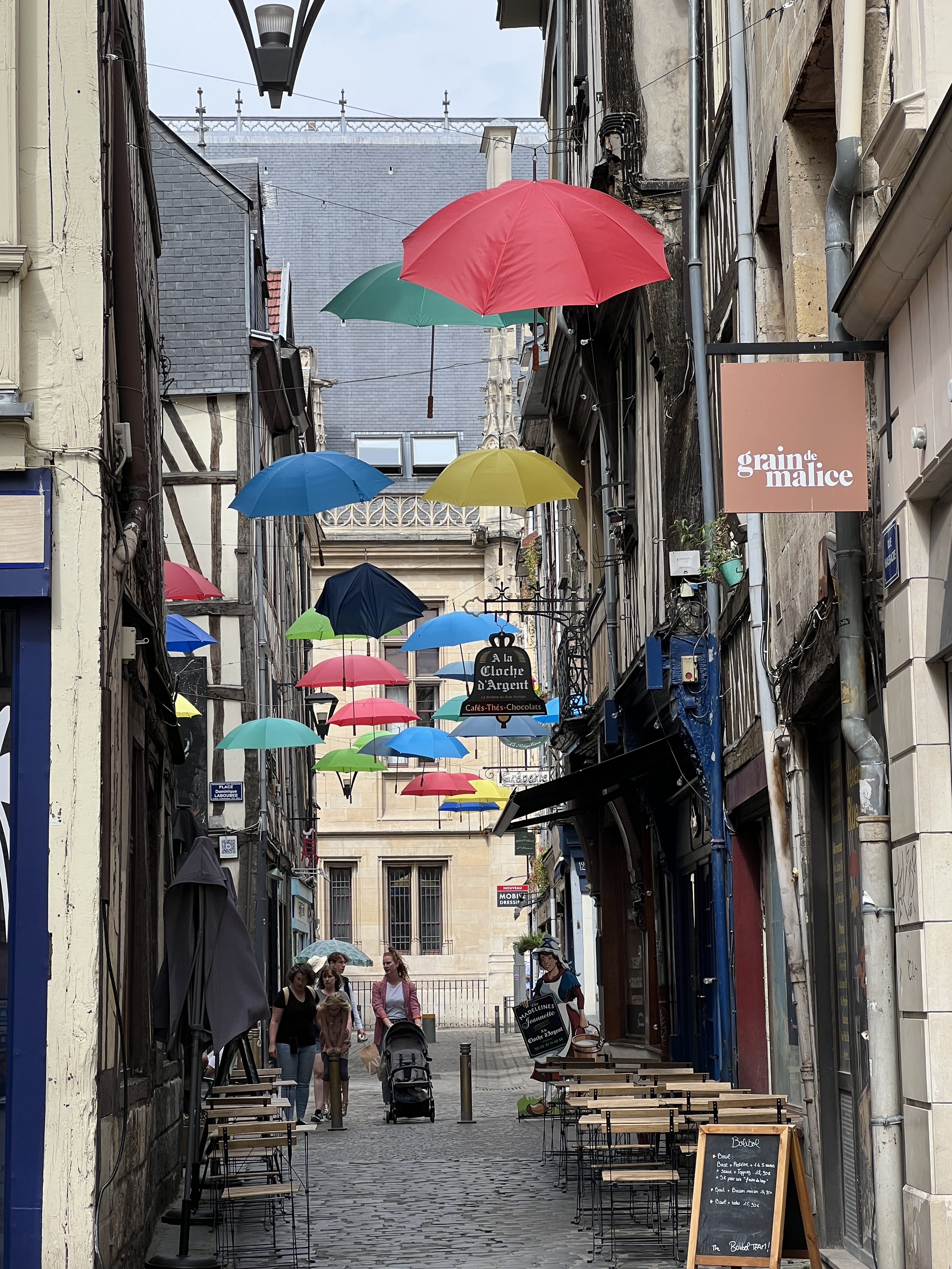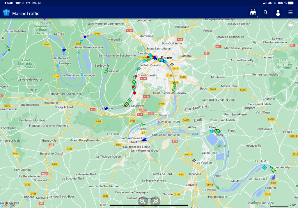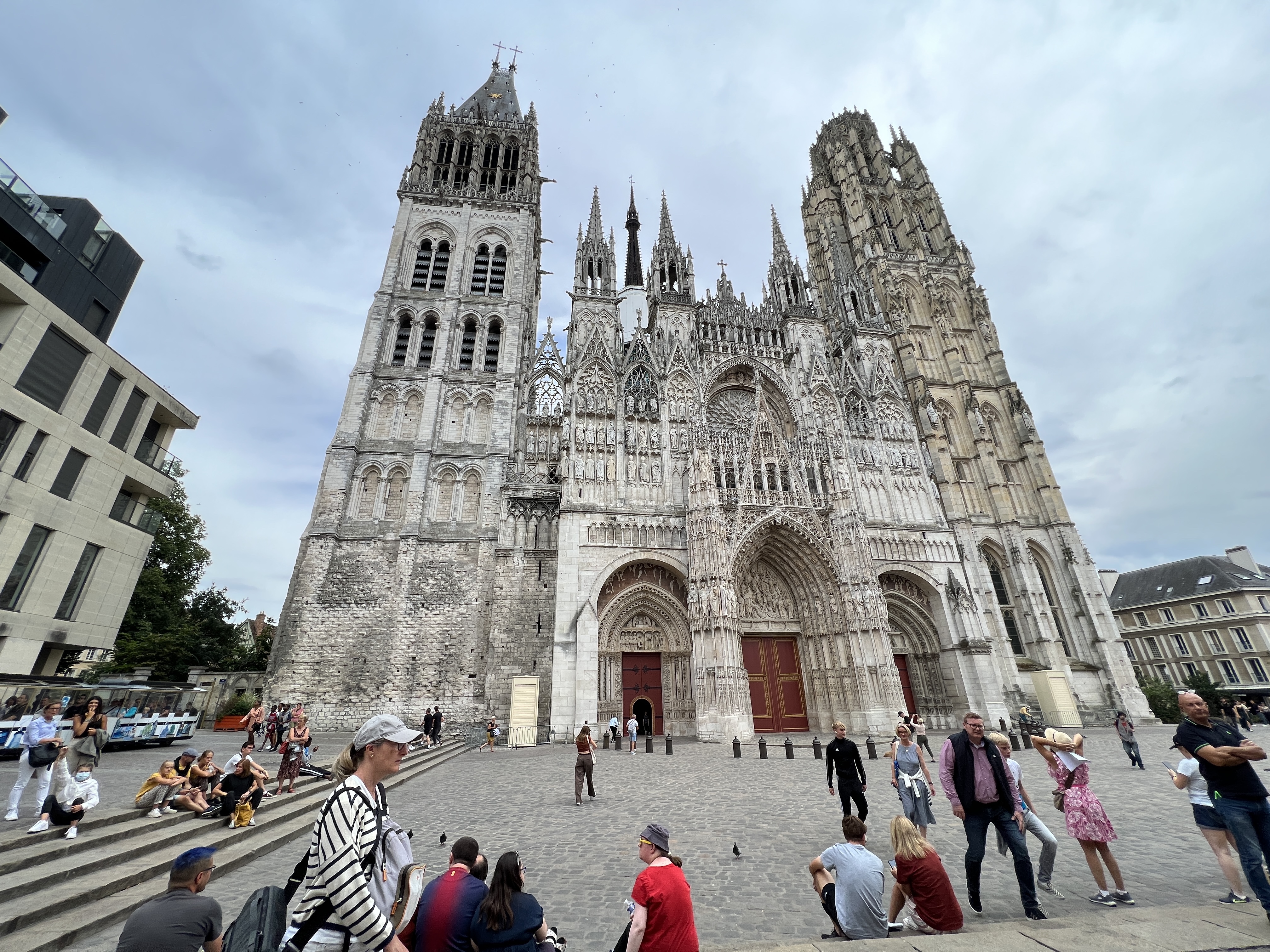 Vi hadde nok store forventninger til denne byen, stikkord er Gange-Rolv (Rollo), vikinger, Jeanne d’Arc, katedralen, Palaise de Justice, historie, og ikke minst elv. Det ble litt vandring, og det var en koselig by, men vi fikk ikke helt med oss at det er et historisk sted. Det meste av byen ble bombet i 1944, og det er spor etter ødeleggelser overalt, mest i form av gjenoppbyggingsarkitektur, som ikke helt fungerer. Men katedralen var imponerende!