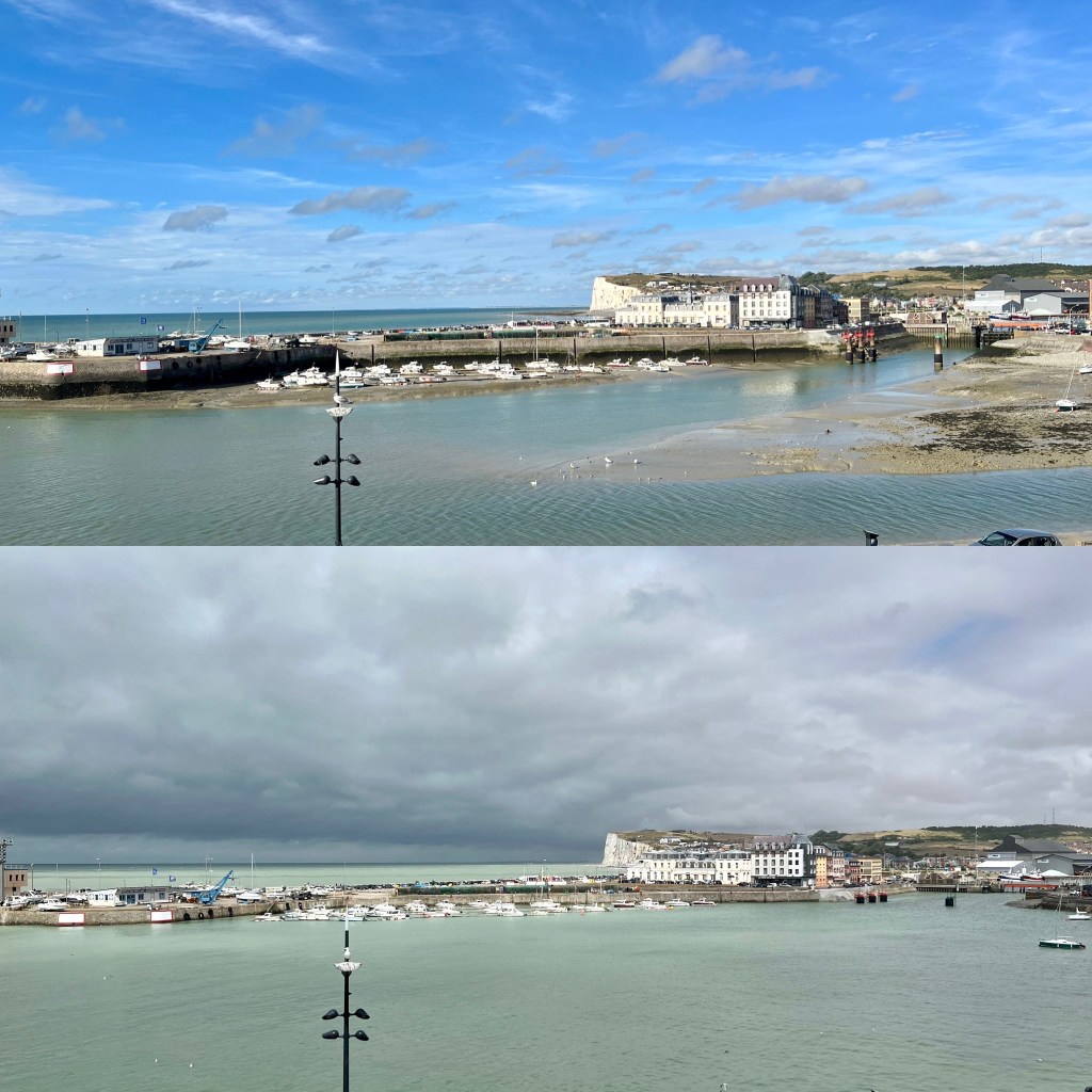 Mye vind, mye vær, men alt går fort over, og vi er fremdeles i shorts! Le Tréport er en kul by, foreløpig omtrent uten nederlendere og belgiere. Vi spekulerer i om de heller reiser til den mer omtalte Etretat, eller om det er strendene lenger sør i Normandie som lokker.
