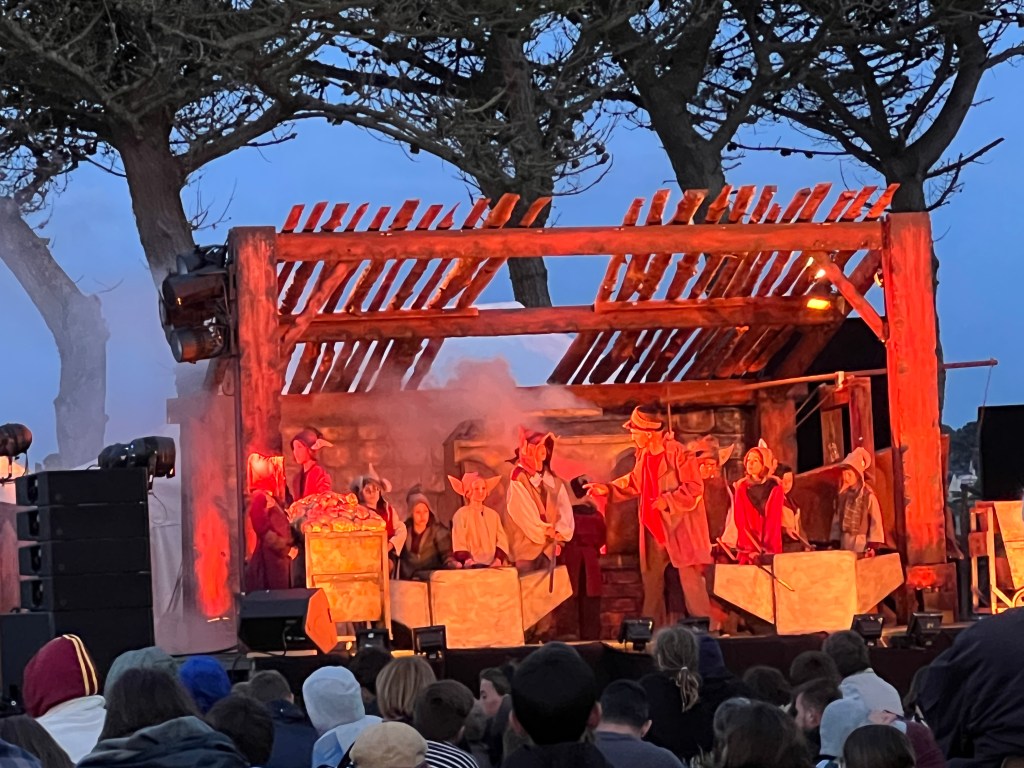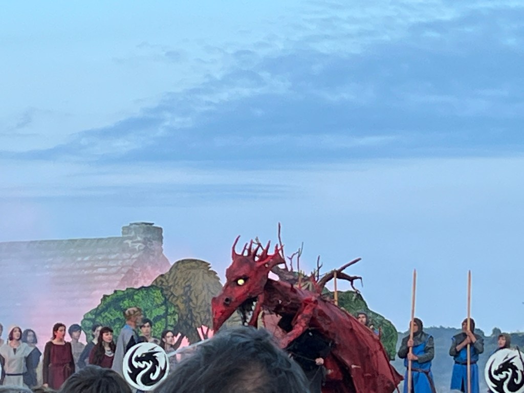 Forestillingen til Ar Vro Bagan om kong Arthur var interessant, om enn litt slitsom å følge med på, siden alt var på fransk, eller bretonsk. Det var et utendørs spectacle med 90 skuespillere, en gigantisk scene, masse pyroeffekter og fyrverkeri. Men godeste Arthur brukte litt tid på å dø, for å si det sånn. Litt for lang tid, faktisk. Men vi holdt ut til siste sverd i stein var oppbrukt. Forestillingen understrekte uansett de sterke keltiske båndene som går over det lille havet mellom Bretagne og Cornwall og Irland.