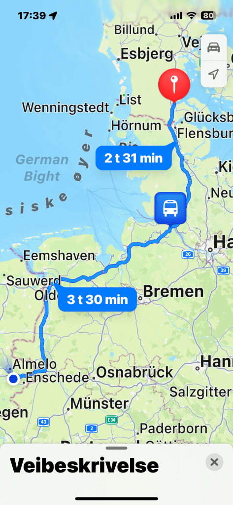 I kveld ender vi nok med nok en grense, men den har vi nok passert. Målet er Aabenraa!
