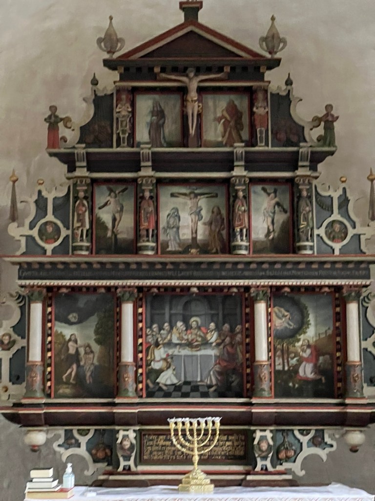 Når det er sagt; for en perle av en middelalderkirke! Ikke noe krimskrams av 1980-talls tegninger og vas. Ren og vakker arkitektur, en fantastisk altertavle, flotte kalkmalerier, og ikke minst, en åpen dør, som gjorde at vi fikk se den inni.