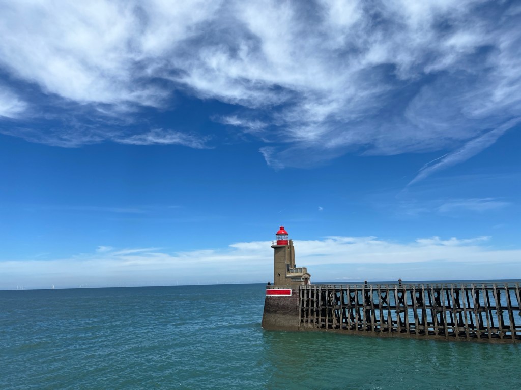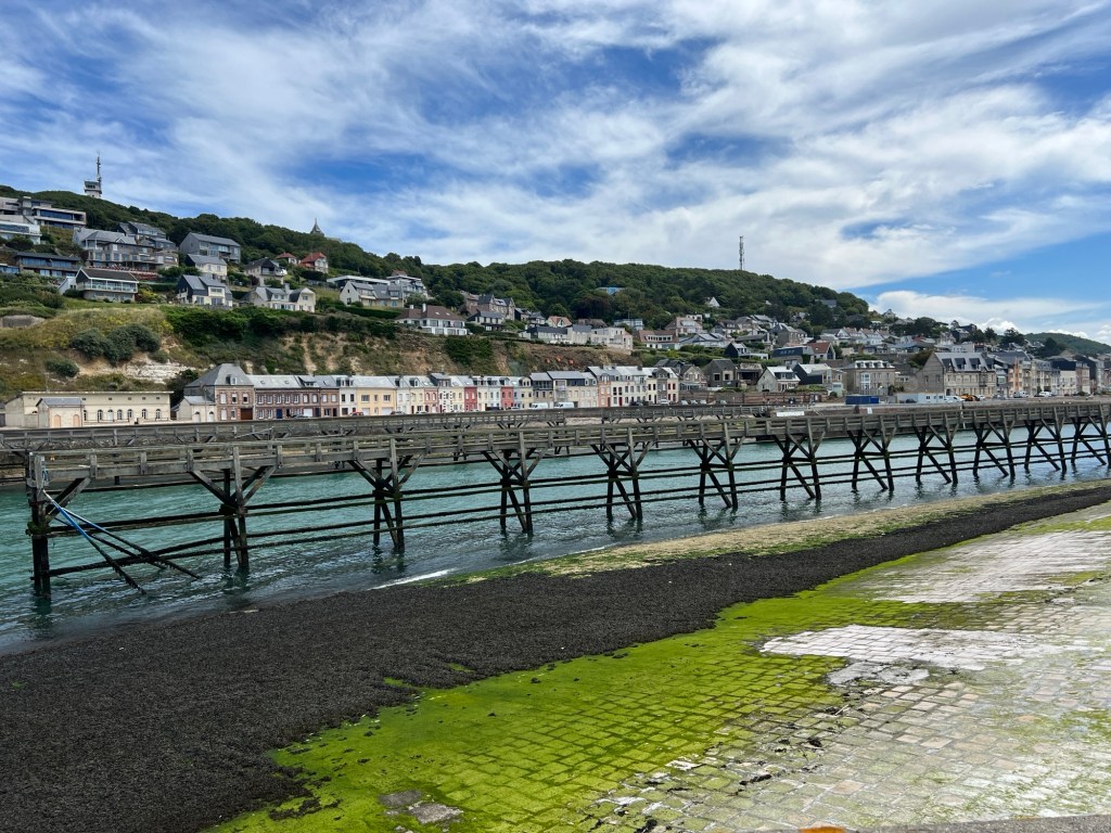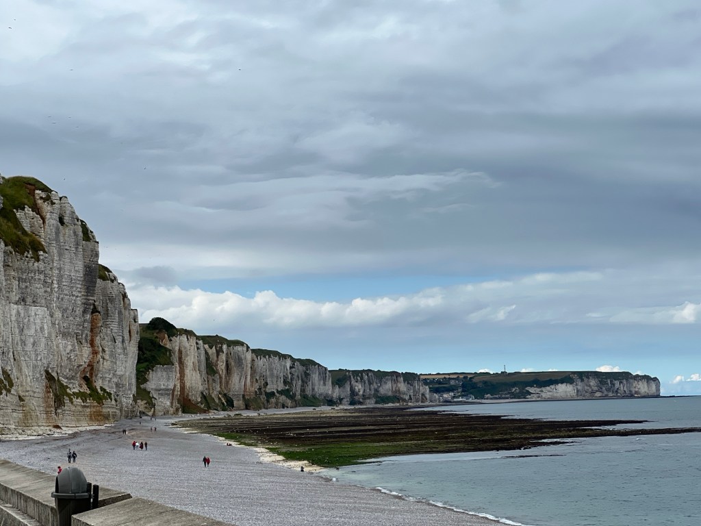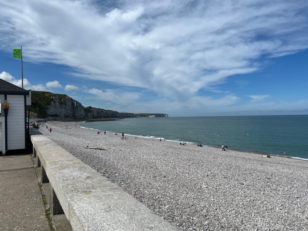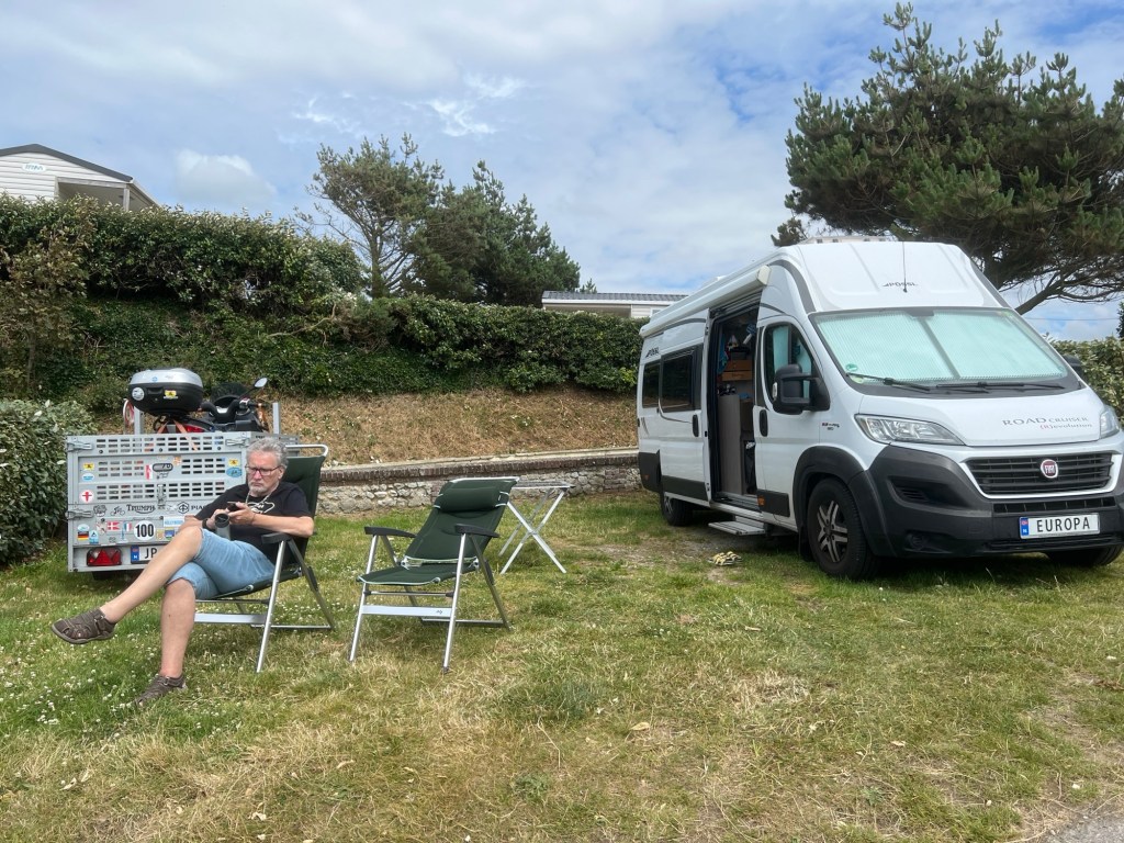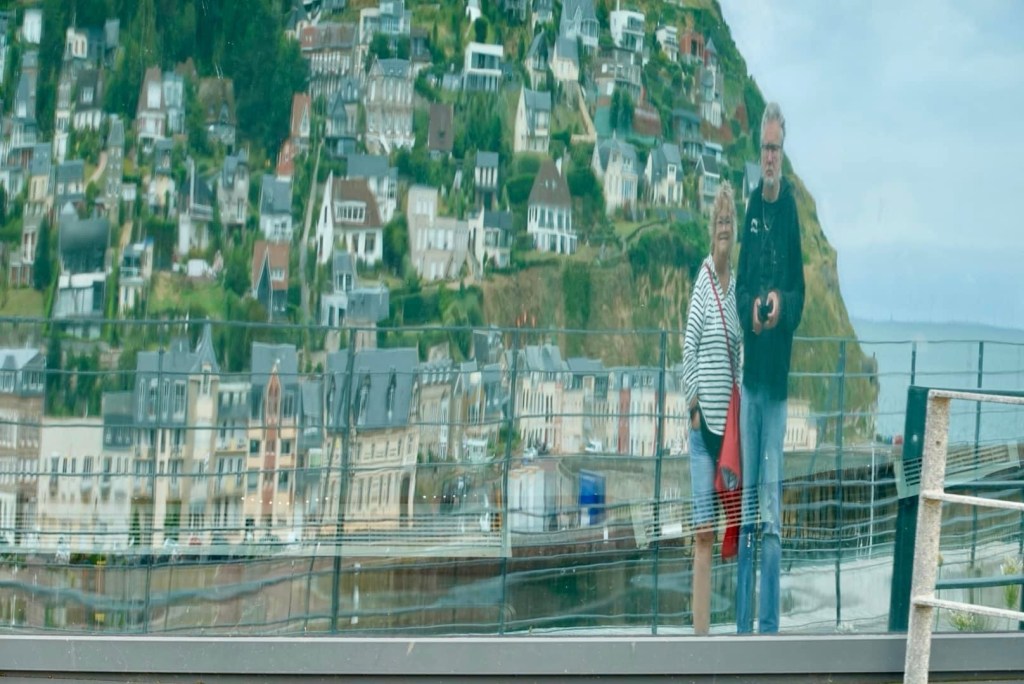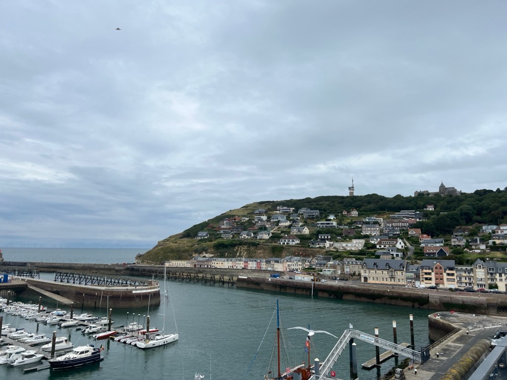 Fecamp var fint nok, på stranden, resten av byen, var ikke så fin. Ikke særlig til sentrum, ikke så mye forseggjort, men campingen var jo fin, sånn utsiktsmessig. Den er imidlertid ikke for store bobiler. Vi hadde kanskje nesten den fineste plassen, (bestilt på forhånd) der vi fikk inn både bilen og hengeren, men de aller fleste plassene hadde bare gullfin utsikt. Fantastisk utsikt! Rett og slett nydelig. Da er det ikke så farlig med do og dusj og sånn… Det har vi jo i bilen!