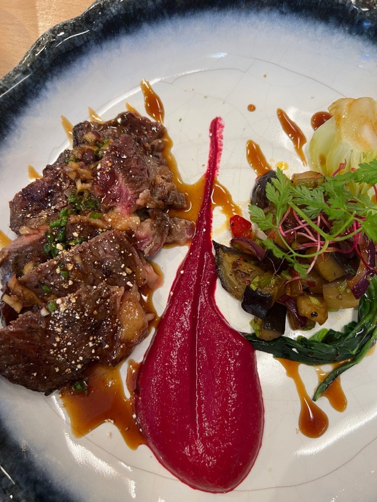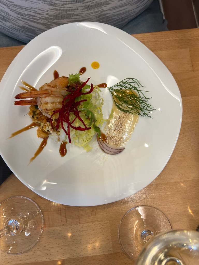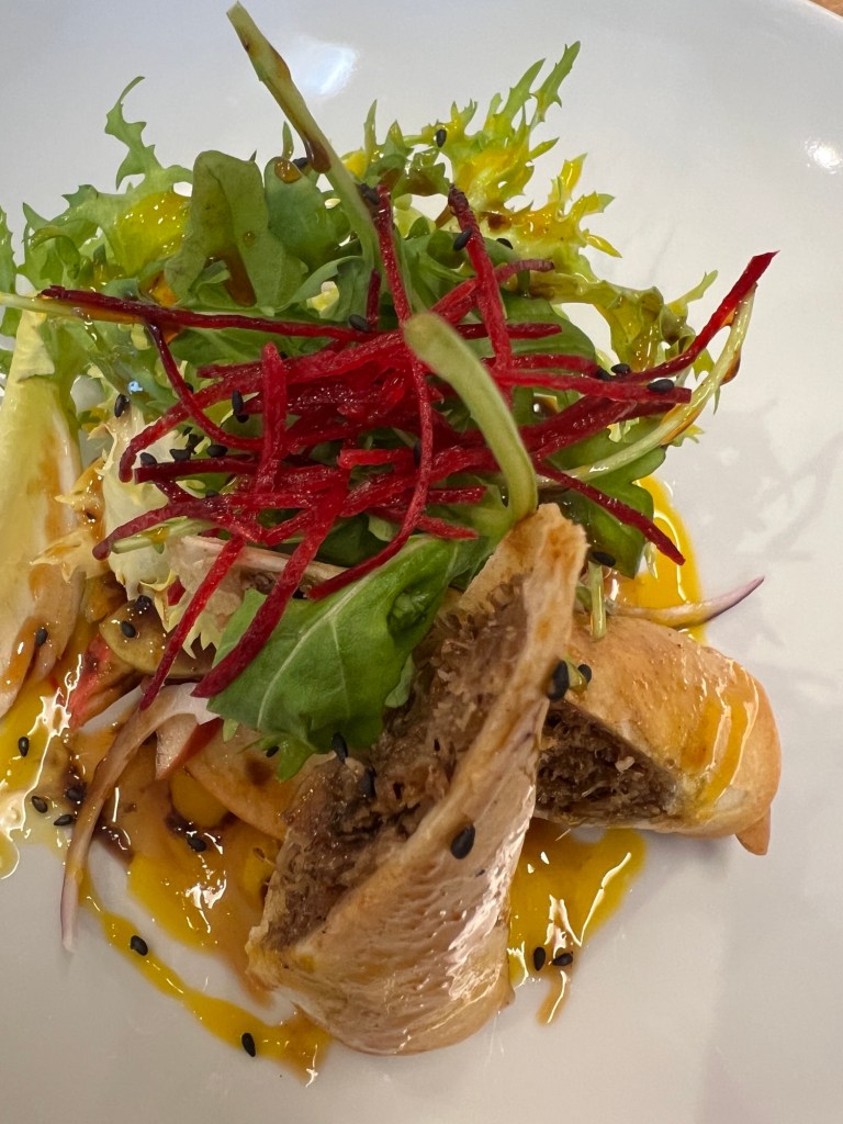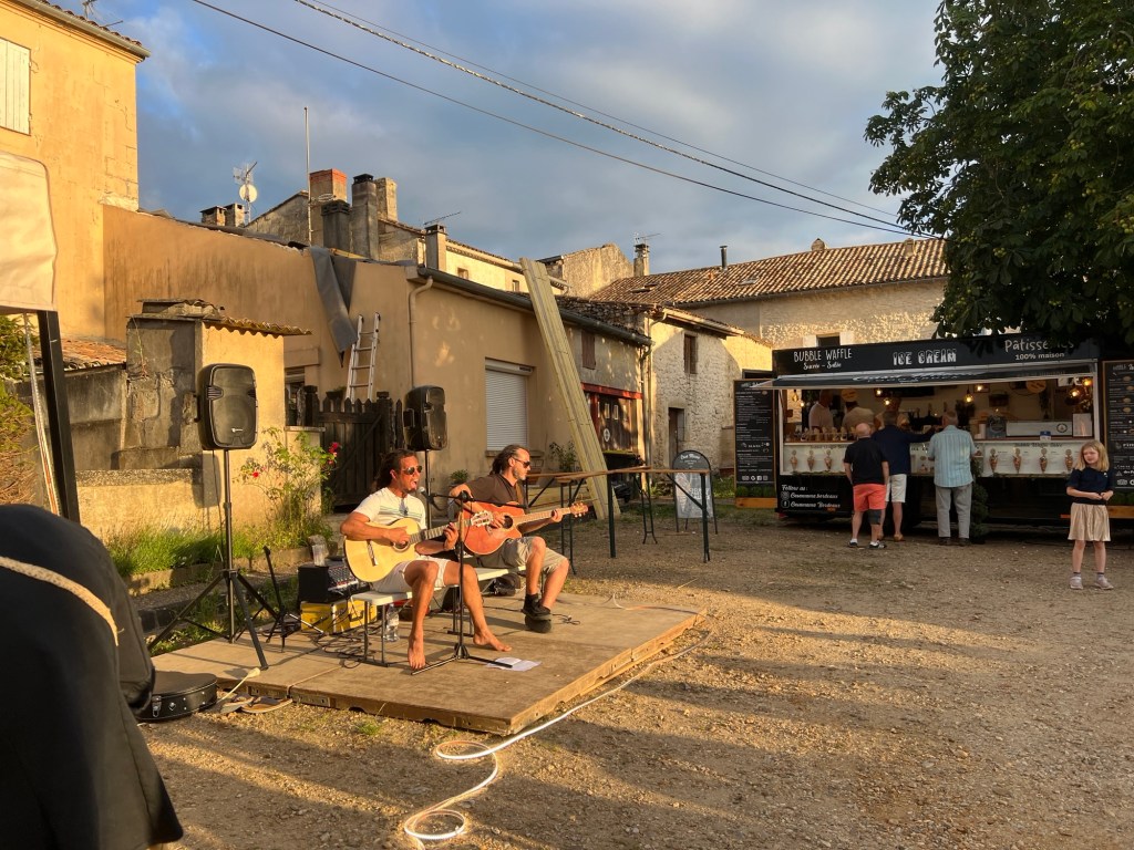 Det var konsert ved slottet, og mat direkte fra gårdene rundt. Vi hadde gode østers, og en kylling som sikkert sprang lykkelig rundt samme morgen, helt uvitende om hvor godt den smakte.