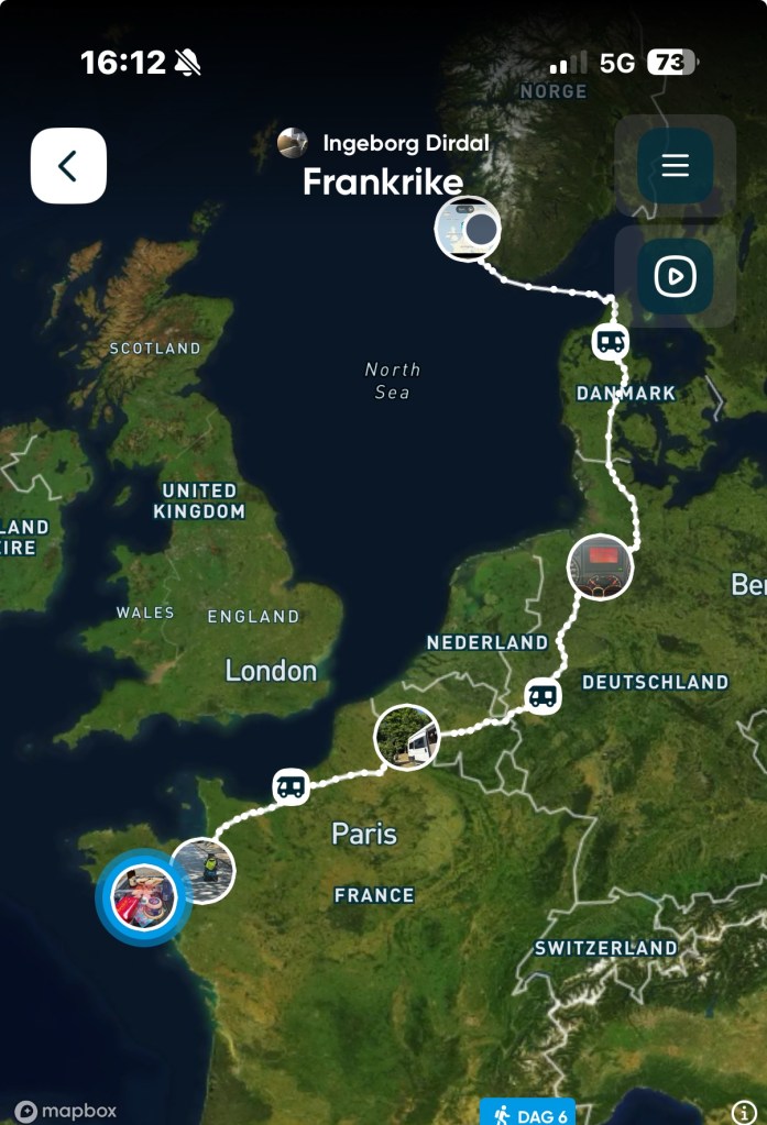 Denne gangen var det viktigere å komme fram, enn å reise, egentlig. Vanligvis har vi god tid på veien, kan stoppe litt og puste ut. Nå ble det Hirtshals – Bremen, Bremen – St-Amand, og så Rennes som var stoppet siste natten før vi kom fram. Vi beregnet jo en natt ekstra på veien, om noe skulle skje. En buffernatt 😉 Så det ble mange kilometre, mange tusen trailere å passere, ikke så himla mange køer å stå i, men litt lange dager.