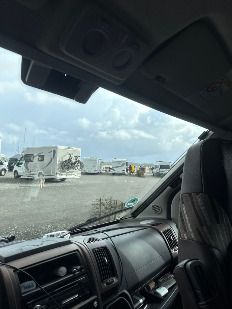 Vi holder oss nær havet. Men denne gangen på andre siden. Vi tar det også ganske med ro, går lange turer, Det er litt å se her, og helt sikker masse mer å se når det er sommer og fint, Bobilplassen er helt full, hver dag, så folksomt er det jo uansett.